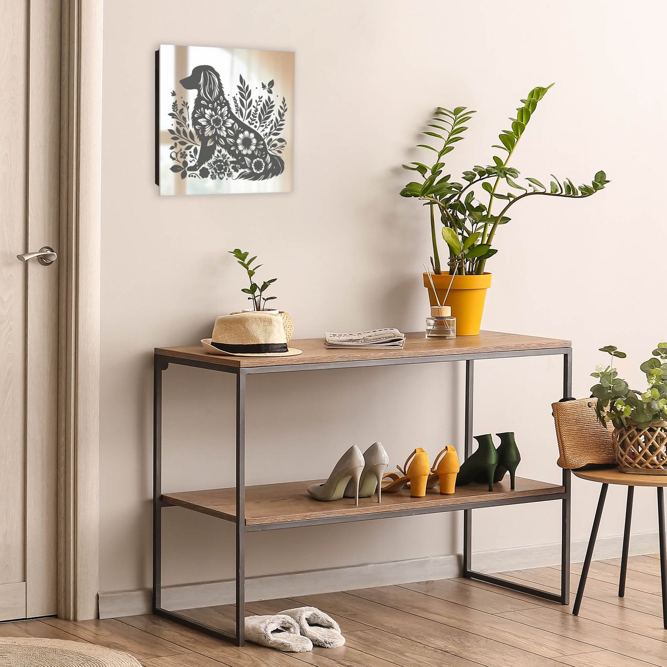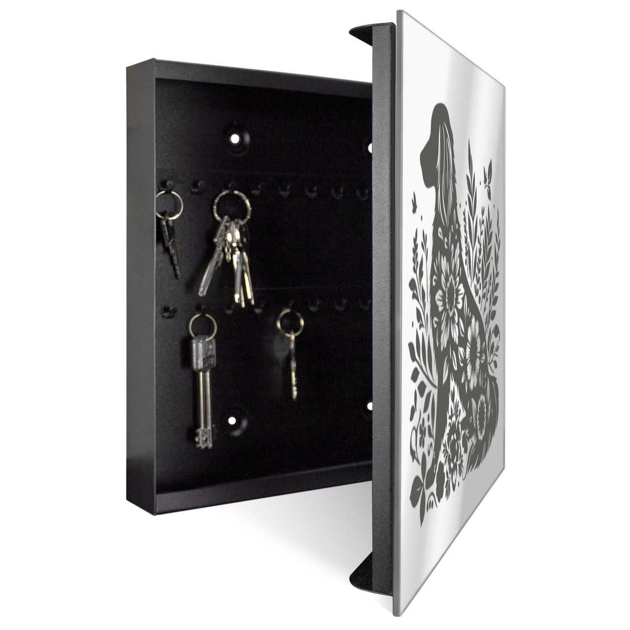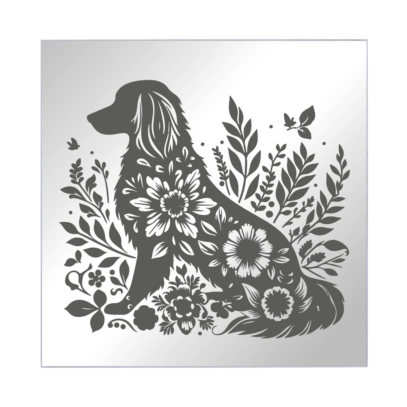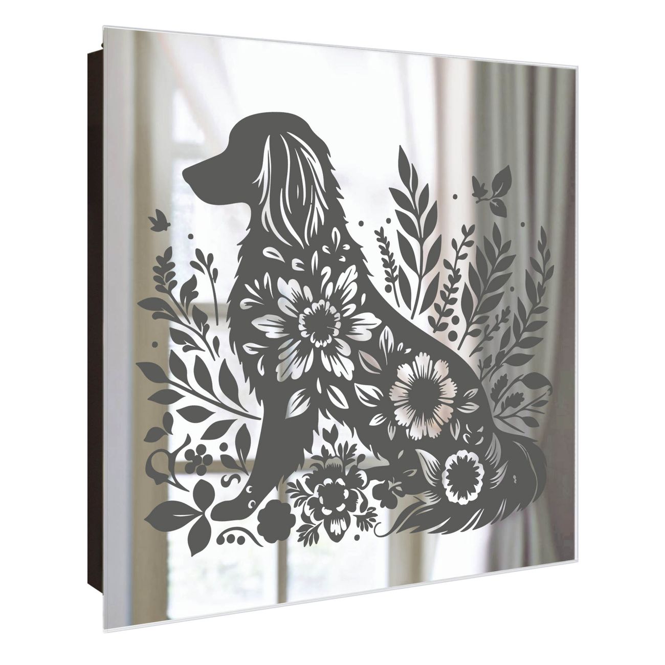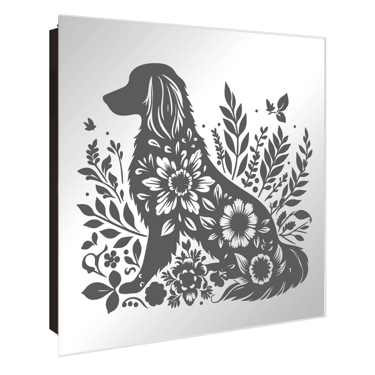 Spiegel Schlüsselkasten - Design Schlüsselbox Motiv Blumenhund Silhouette