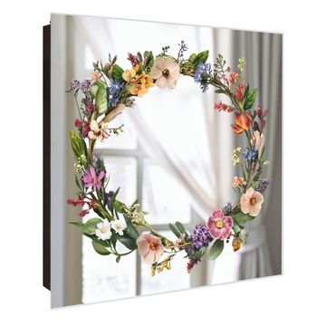 Spiegel Schlüsselkasten - Design Schlüsselbox Motiv Blumenkranz der Jahreszeiten