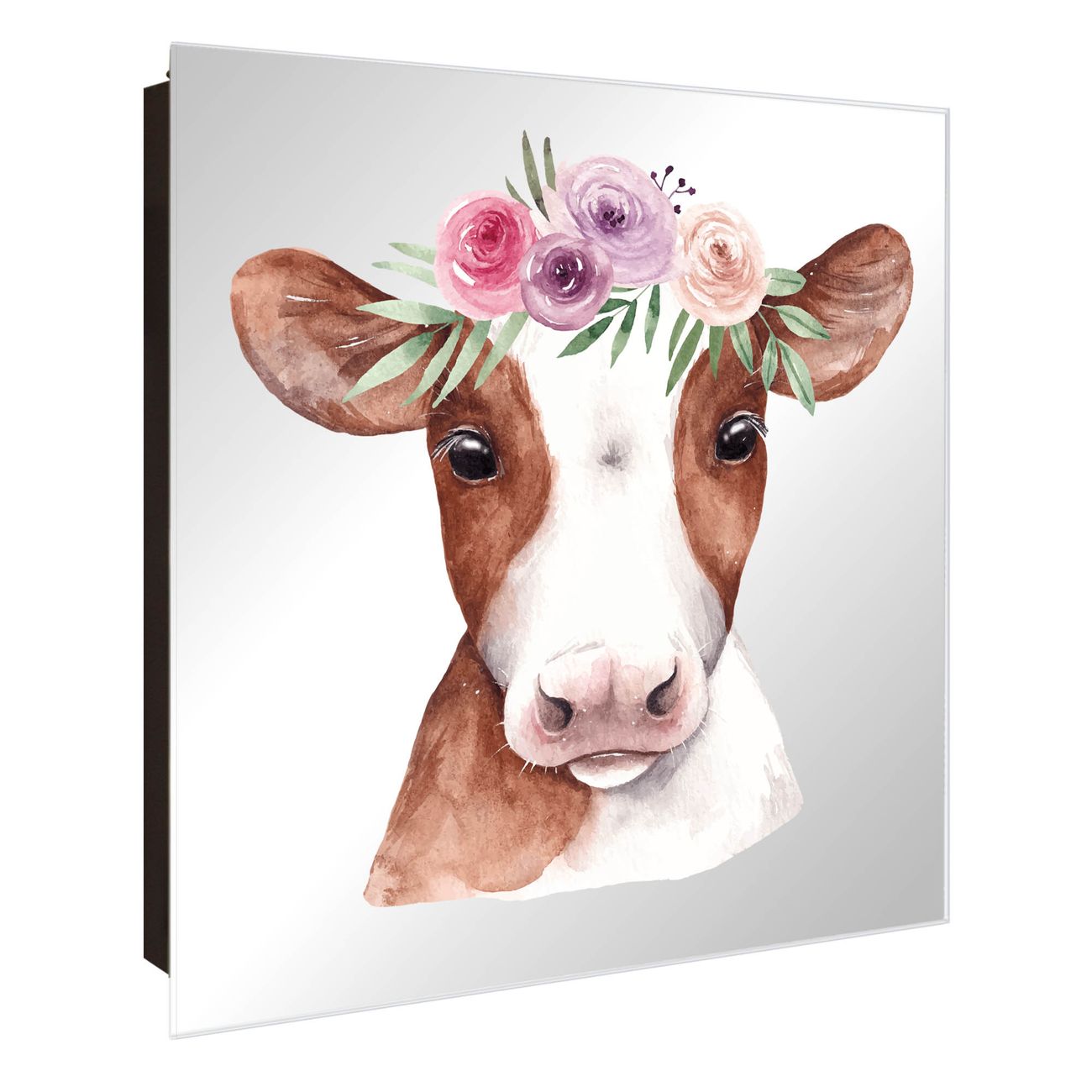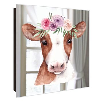 Spiegel Schlüsselkasten - Design Schlüsselbox Motiv Blumenkronen-Kuh
