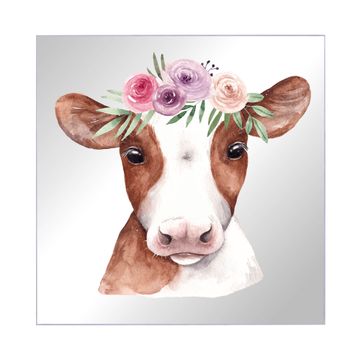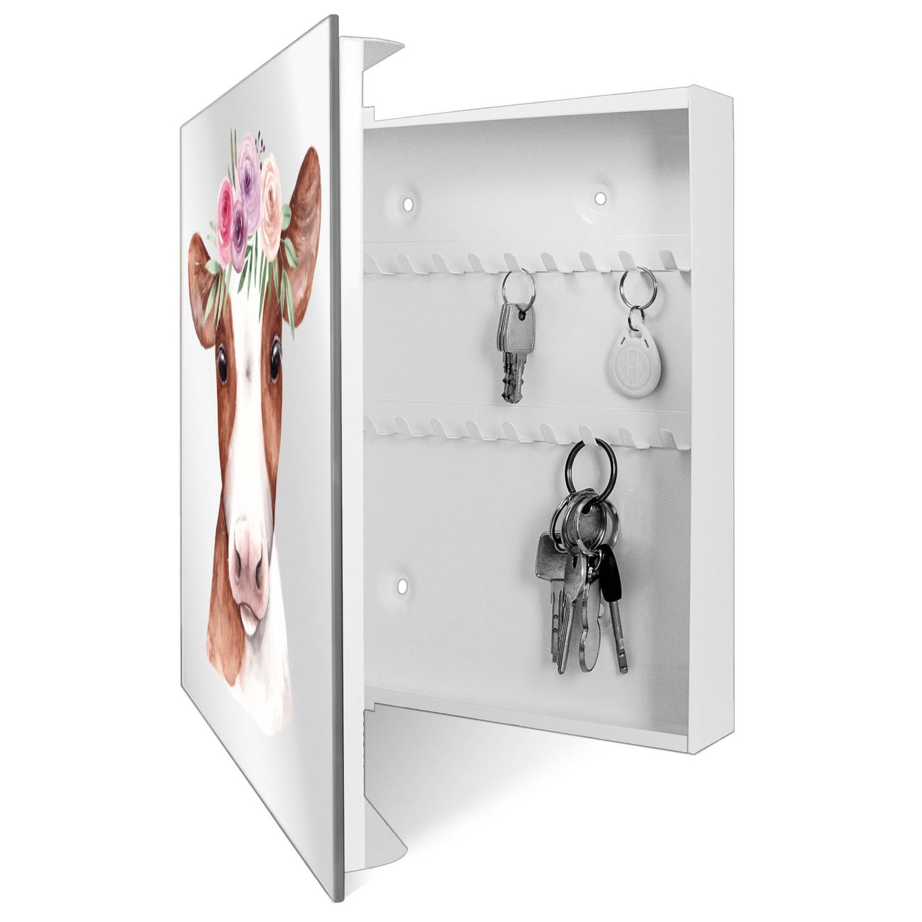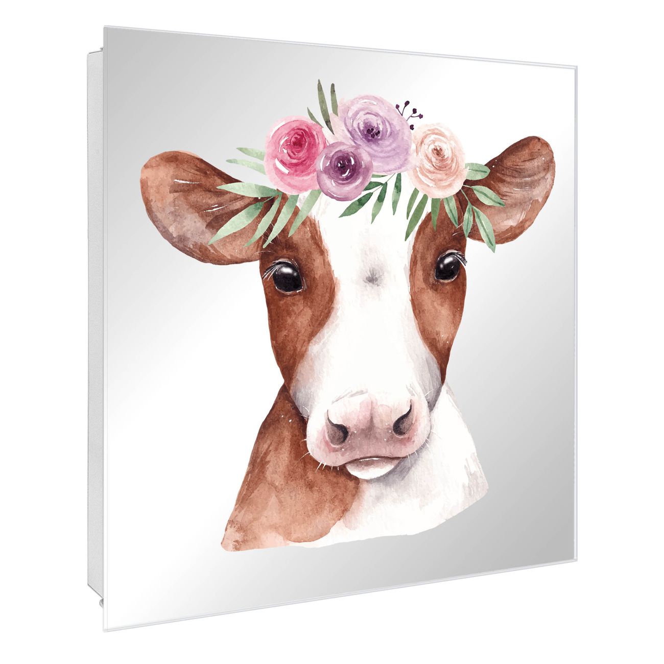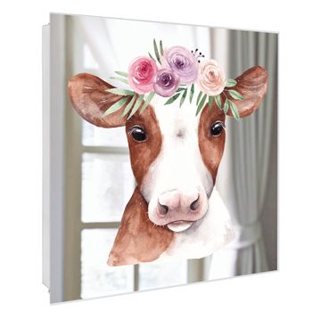 Spiegel Schlüsselkasten - Design Schlüsselbox Motiv Kuh mit Blumenkrone