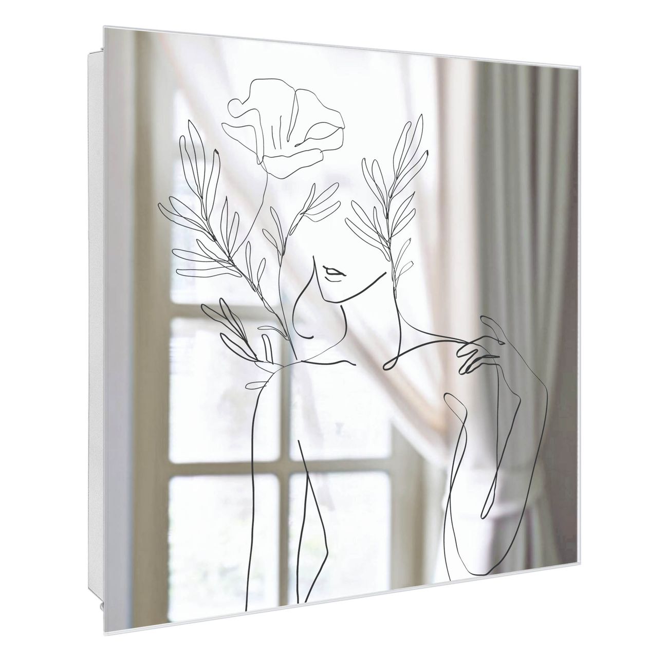 Spiegel Schlüsselkasten - Design Schlüsselbox Motiv Feminin Floral Lineart 2