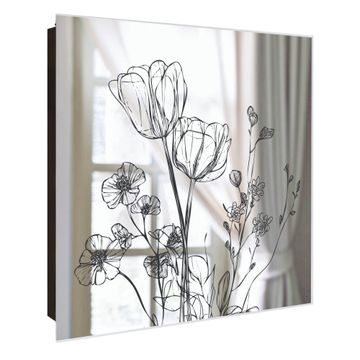 Spiegel Schlüsselkasten - Design Schlüsselbox Motiv Blumenskizze