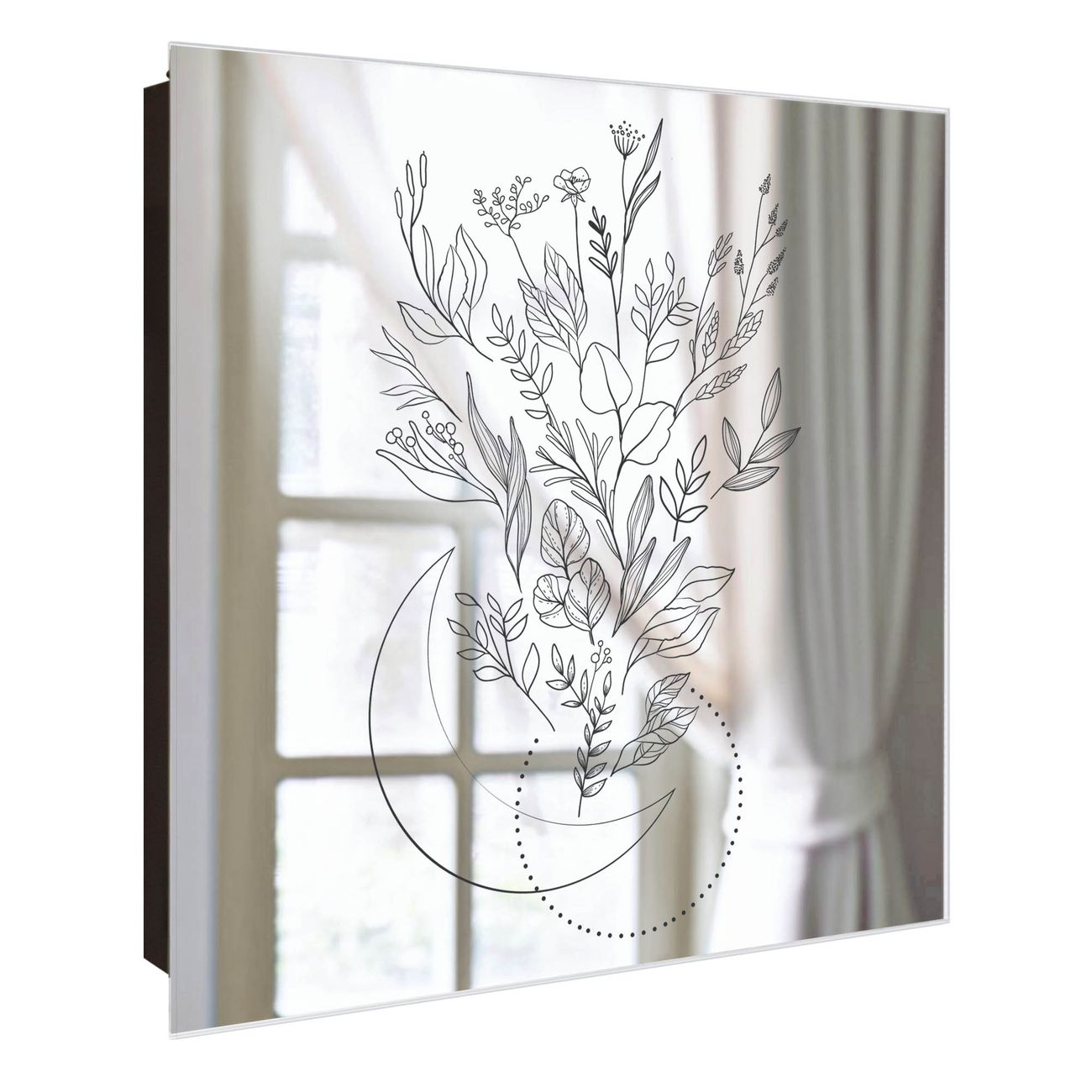 Bringe Ordnung und Stil in deinen Eingangsbereich mit dem banjado Schlüsselkasten mit Spiegel. Die elegante Spiegelfront kombiniert Funktionalität mit modernem Design und macht die Schlüsselaufbewahrung zu einem dekorativen Highlight. ✅ Spiegel Schlüsselaufbewahrung mit Motiv Motiv Blumenstrauß 2 Der Design-Schlüsselkasten Motiv Motiv Blumenstrauß 2 bietet Platz für bis zu 50 Schlüssel, die auf 5 stabilen Reihen mit je 10 Haken übersichtlich verstaut werden. Mit seinen kompakten Maßen von 30 x 30 x 5 cm passt die Schlüsselbox perfekt auch in kleinere Räume. Der schwarz lackierte Stahlkorpus mit rechts angeschlagenem Türscharnier harmoniert mit der Spiegelfront und fügt sich nahtlos in jedes Wohnambiente ein. Ob als Schlüsselorganizer für Zuhause oder als praktische Lösung für Büros, Praxen und Gewerbe, der banjado Schlüsselkasten sorgt für Ordnung und Übersicht. Die Spiegelfront verleiht dem Eingangsbereich zusätzliche Funktionalität und lässt Räume optisch größer wirken. Die Schlüsselbox Motiv Motiv Blumenstrauß 2 zur Wandmontage wird inklusive Befestigungsmaterial geliefert und ist schnell angebracht. So hast du deine Schlüssel jederzeit griffbereit und zugleich stilvoll verstaut. Mit diesem banjado Schlüsselkasten Motiv Motiv Blumenstrauß 2 kombinierst du praktische Aufbewahrung mit stilvollem Wohndesign. Ob privat oder geschäftlich, die Schlüsselbox sorgt für mehr Ordnung, Übersicht und ein wohnliches Ambiente.Vorteile im Überblick
