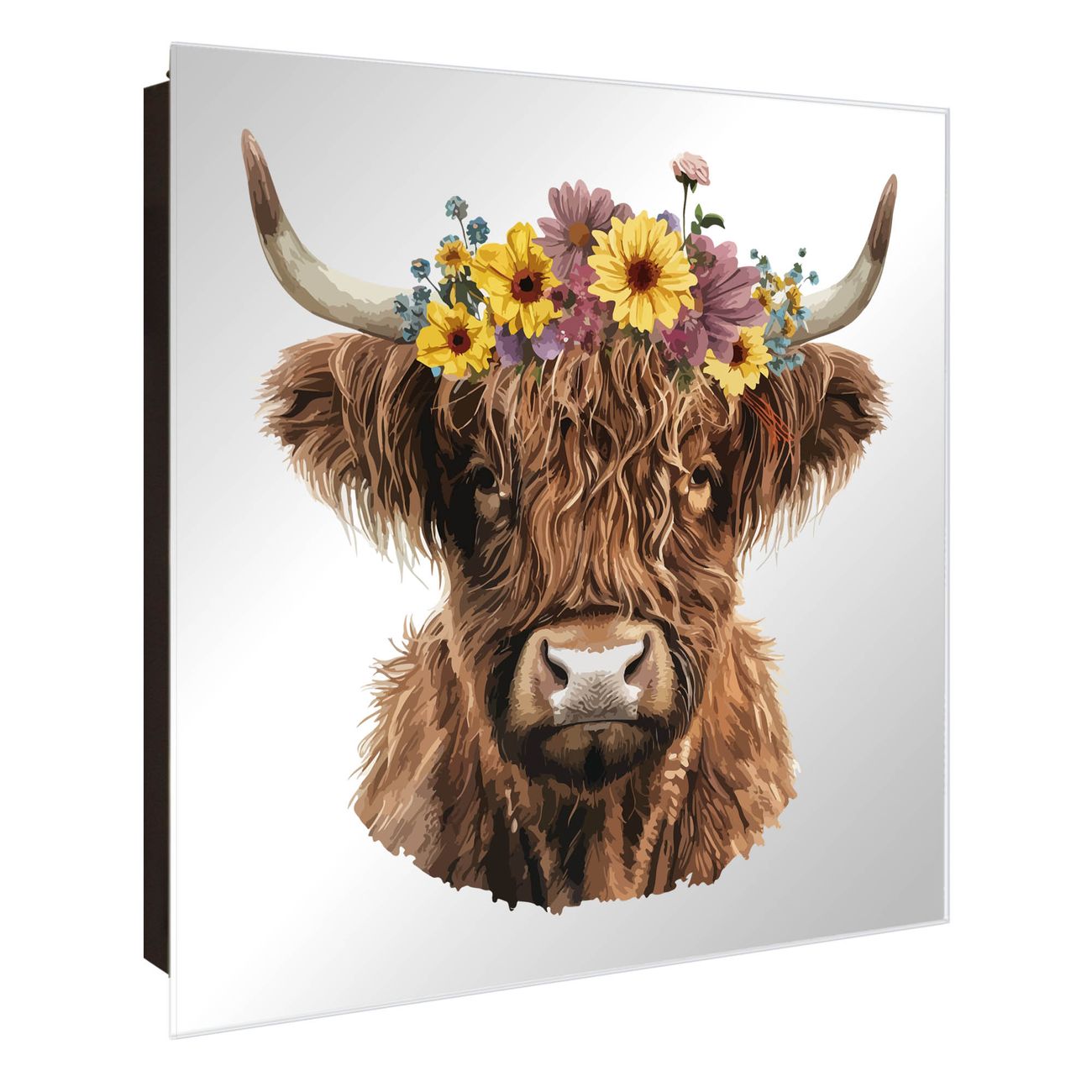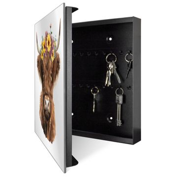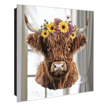 Spiegel Schlüsselkasten - Design Schlüsselbox Motiv Blumige Highland-Kuh