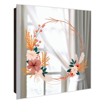 Spiegel Schlüsselkasten - Design Schlüsselbox Motiv Blumiger Kranz
