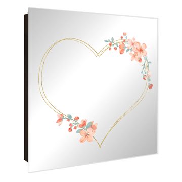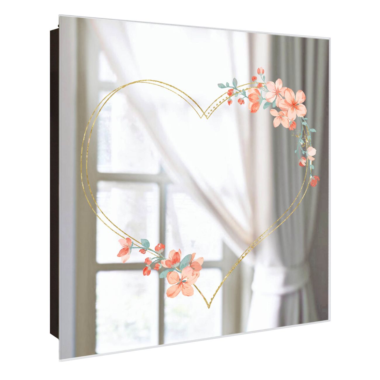 Spiegel Schlüsselkasten - Design Schlüsselbox Motiv Blumiges Herz