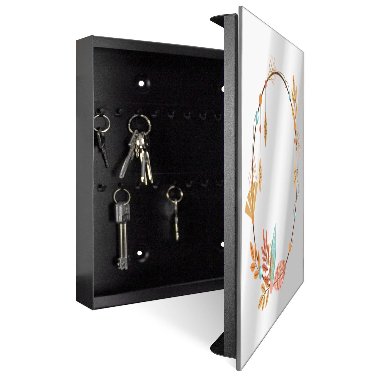 Spiegel Schlüsselkasten - Design Schlüsselbox Motiv Boho Herbstkranz