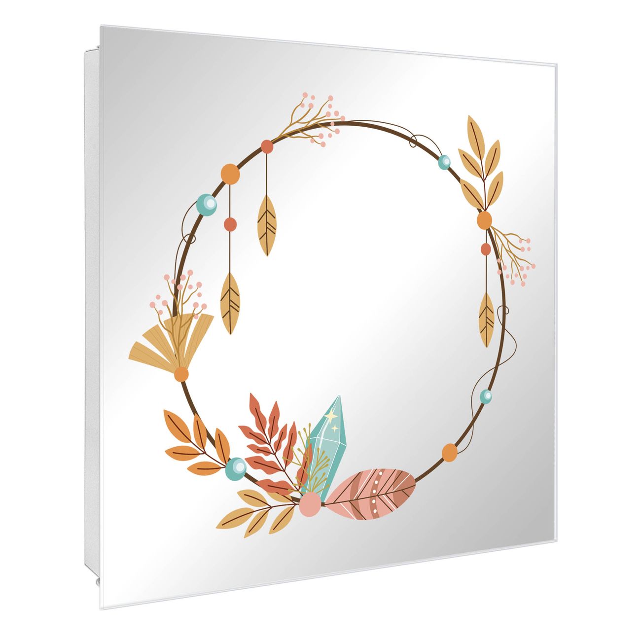 Spiegel Schlüsselkasten - Design Schlüsselbox Motiv Boho Herbstkranz