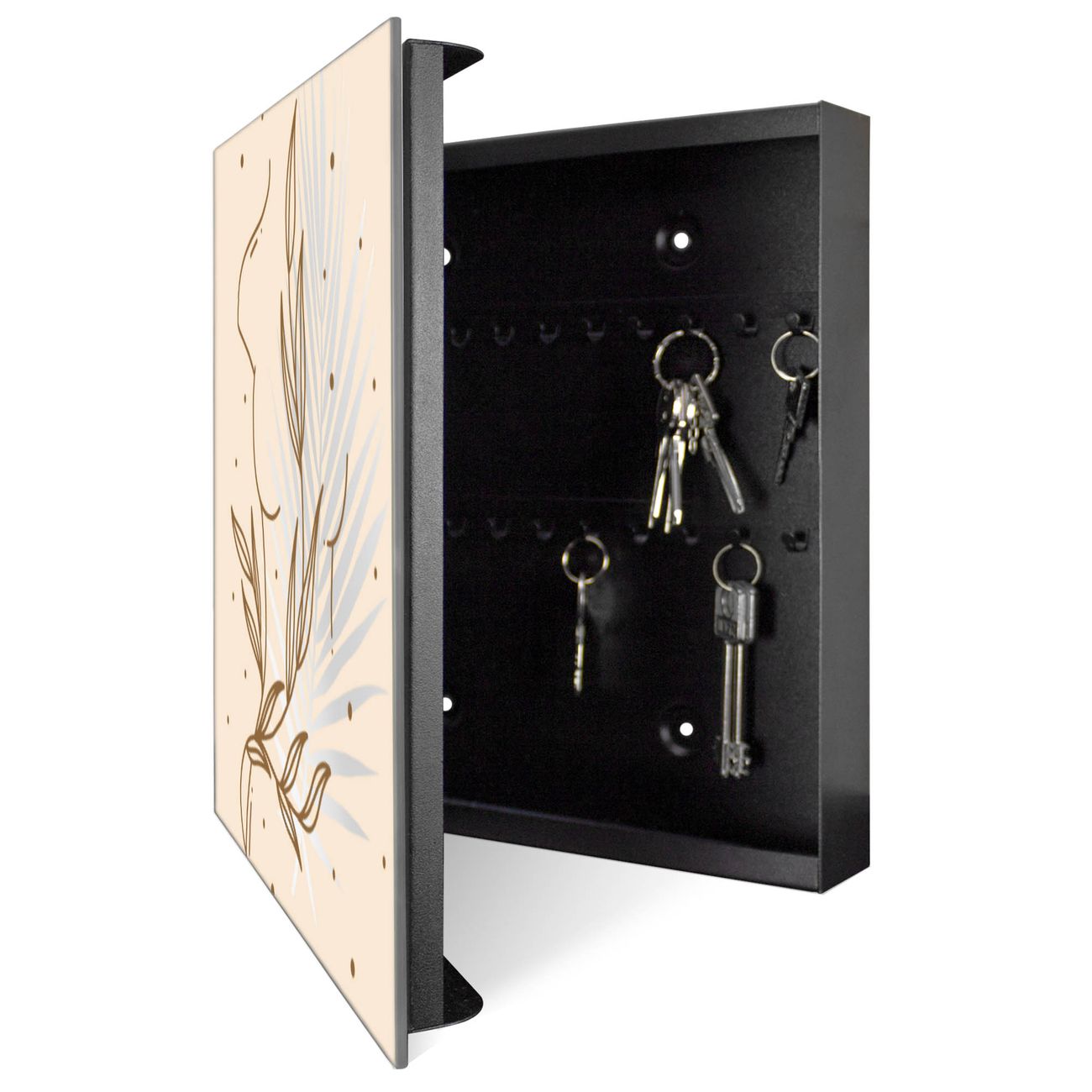 Spiegel Schlüsselkasten - Design Schlüsselbox Motiv Botanische Linienkunst