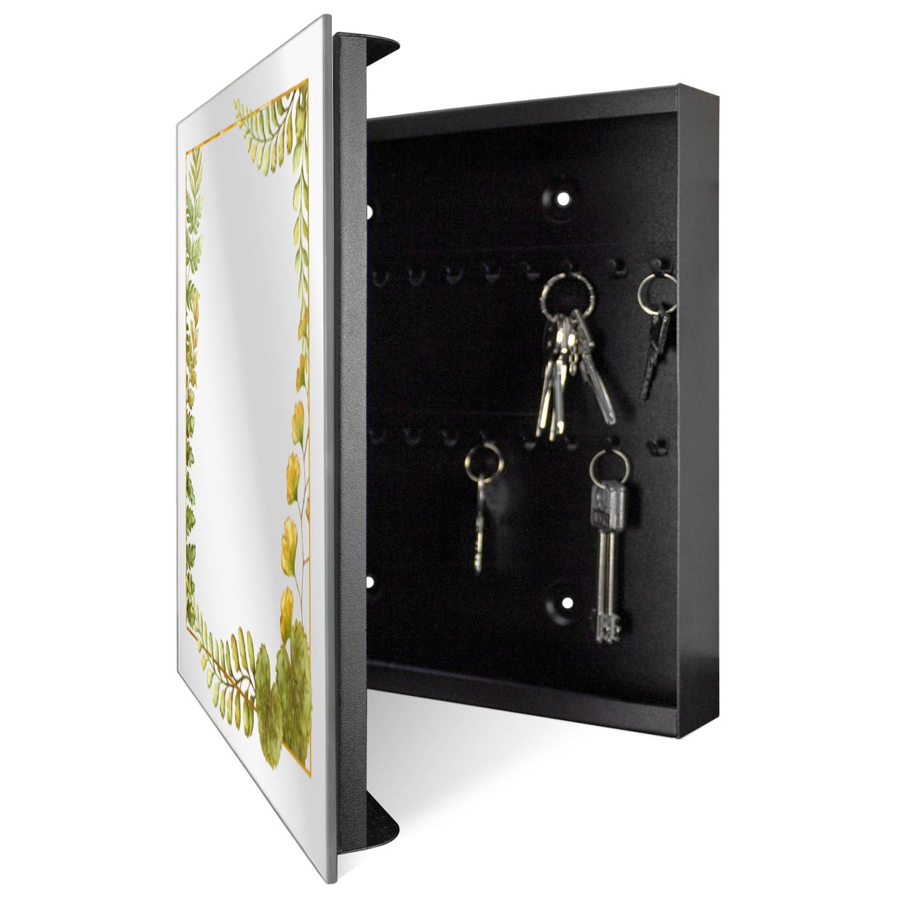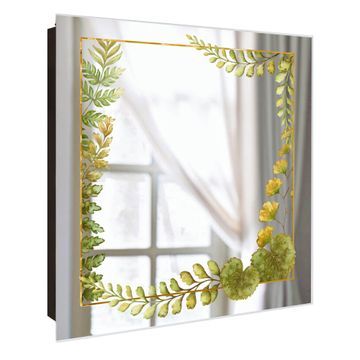 Spiegel Schlüsselkasten - Design Schlüsselbox Motiv Botanischer Rahmen 2