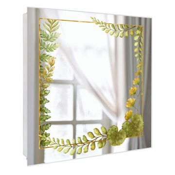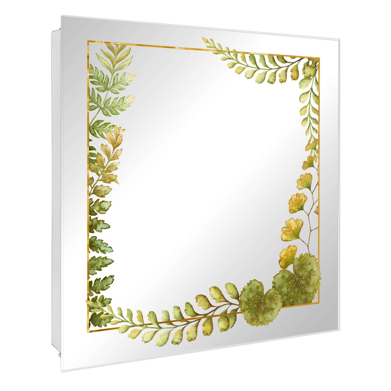 Spiegel Schlüsselkasten - Design Schlüsselbox Motiv Botanischer Rahmen 2