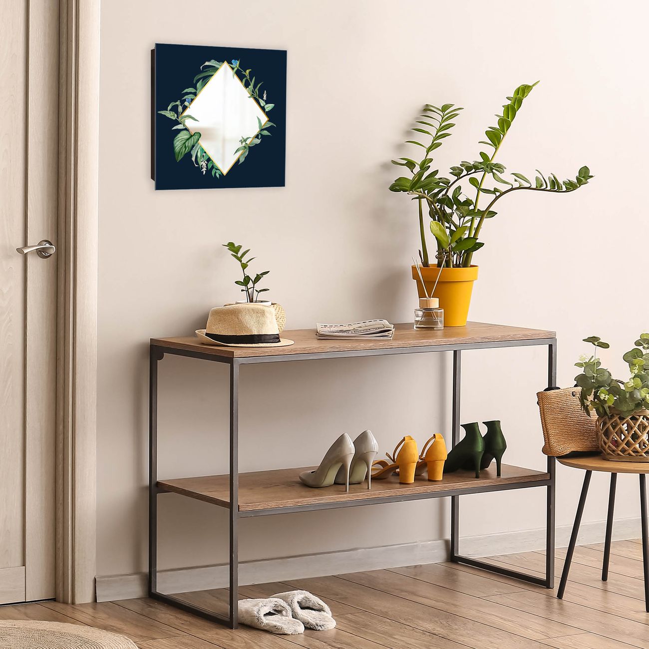 Spiegel Schlüsselkasten - Design Schlüsselbox Motiv Botanischer Rahmen