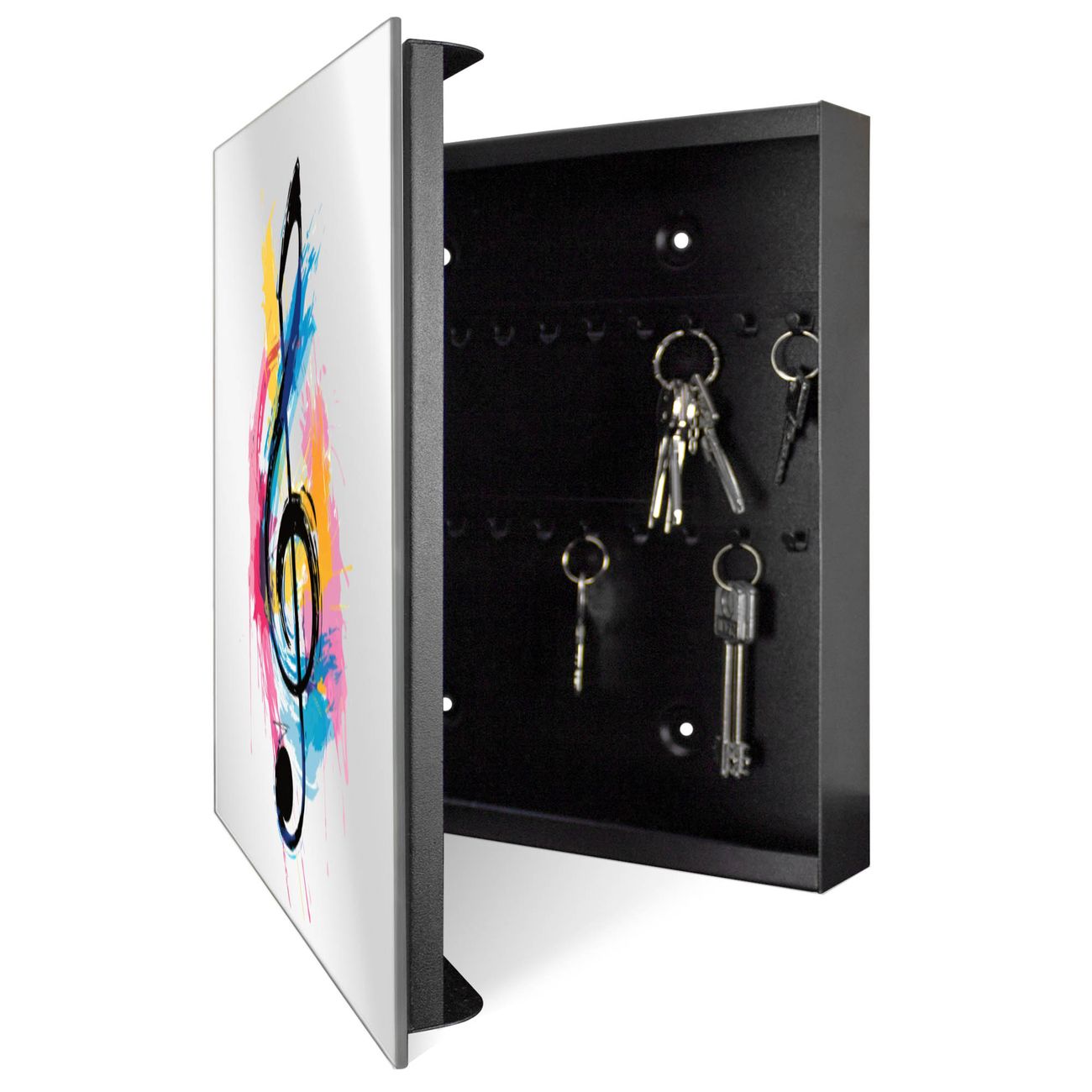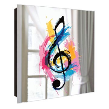 Spiegel Schlüsselkasten - Design Schlüsselbox Motiv Bunte Notenpalette