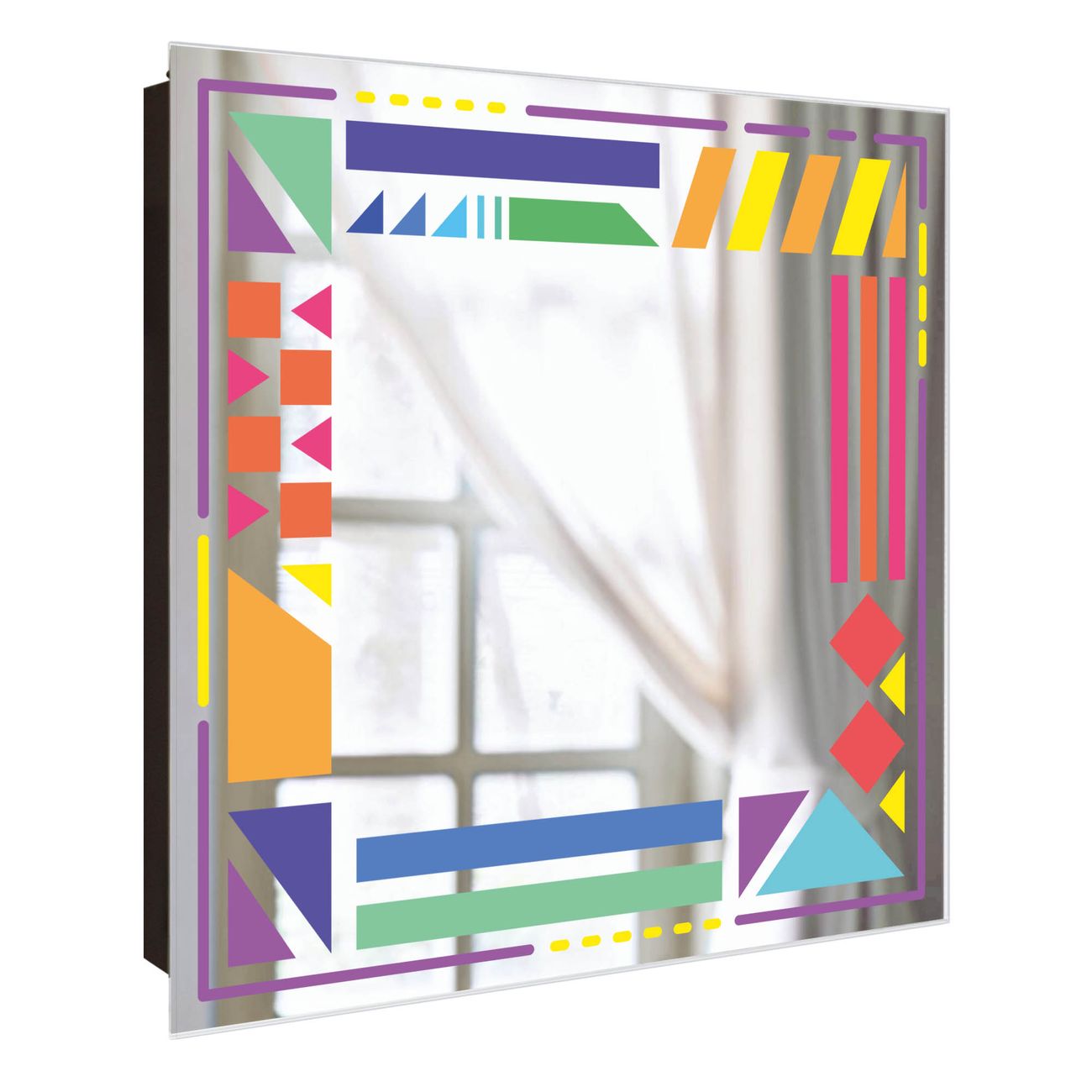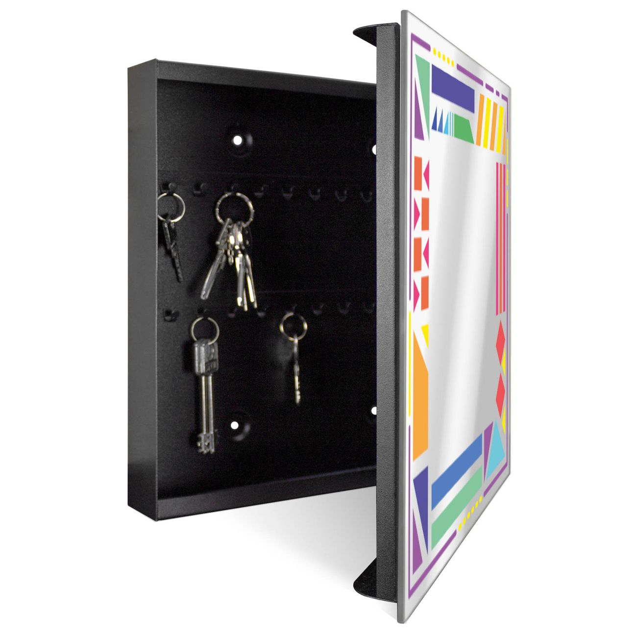 Spiegel Schlüsselkasten - Design Schlüsselbox Motiv Bunter Geometrischer Rahmen 2