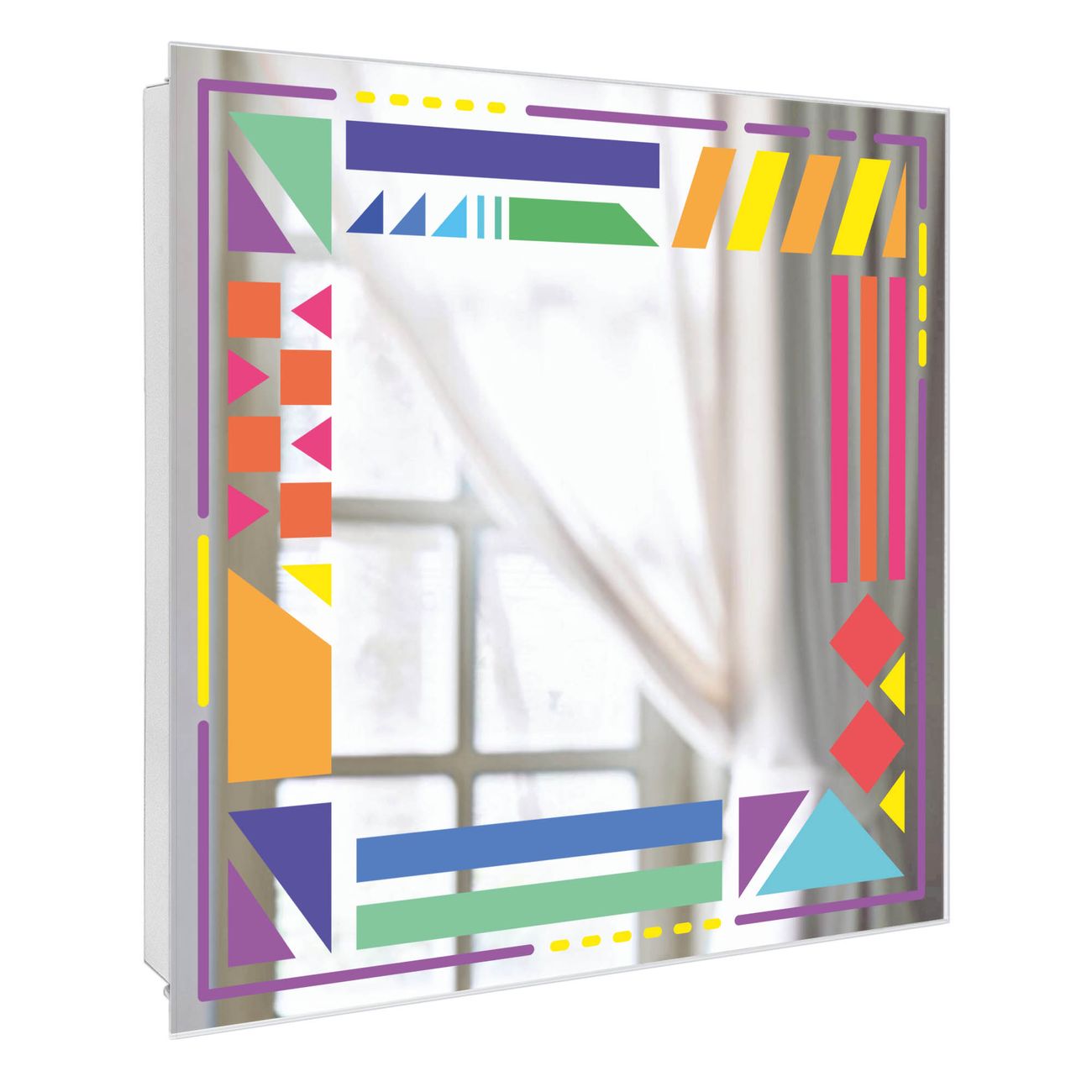 Spiegel Schlüsselkasten - Design Schlüsselbox Motiv Bunter Geometrischer Rahmen 2