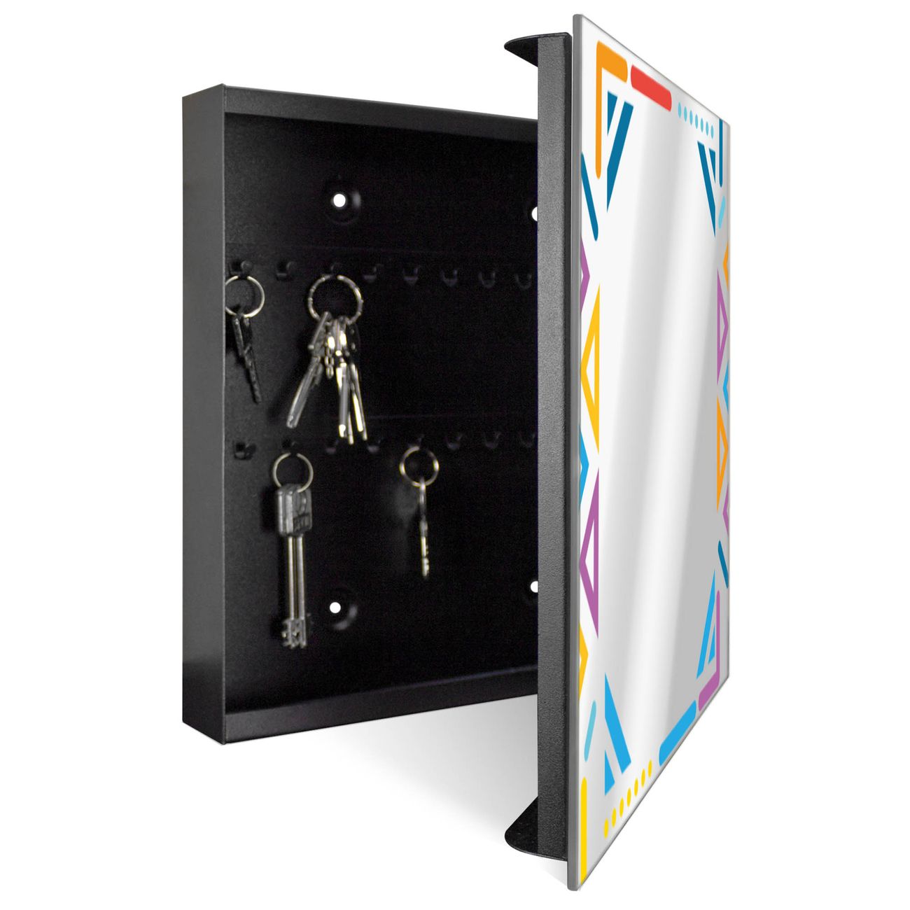 Spiegel Schlüsselkasten - Design Schlüsselbox Motiv Bunter Geometrischer Rahmen