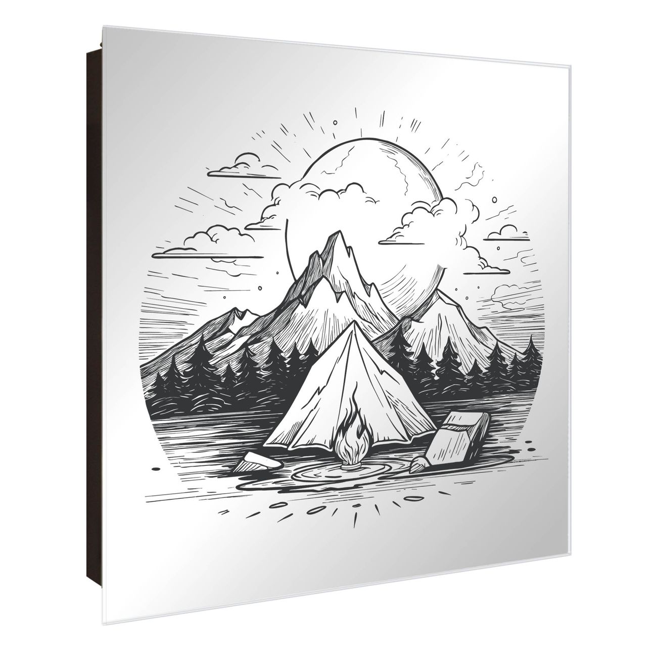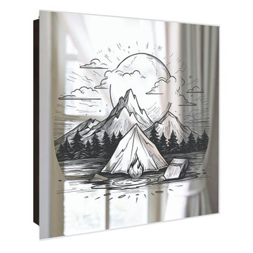 Spiegel Schlüsselkasten - Design Schlüsselbox Motiv Camping im Mondschein