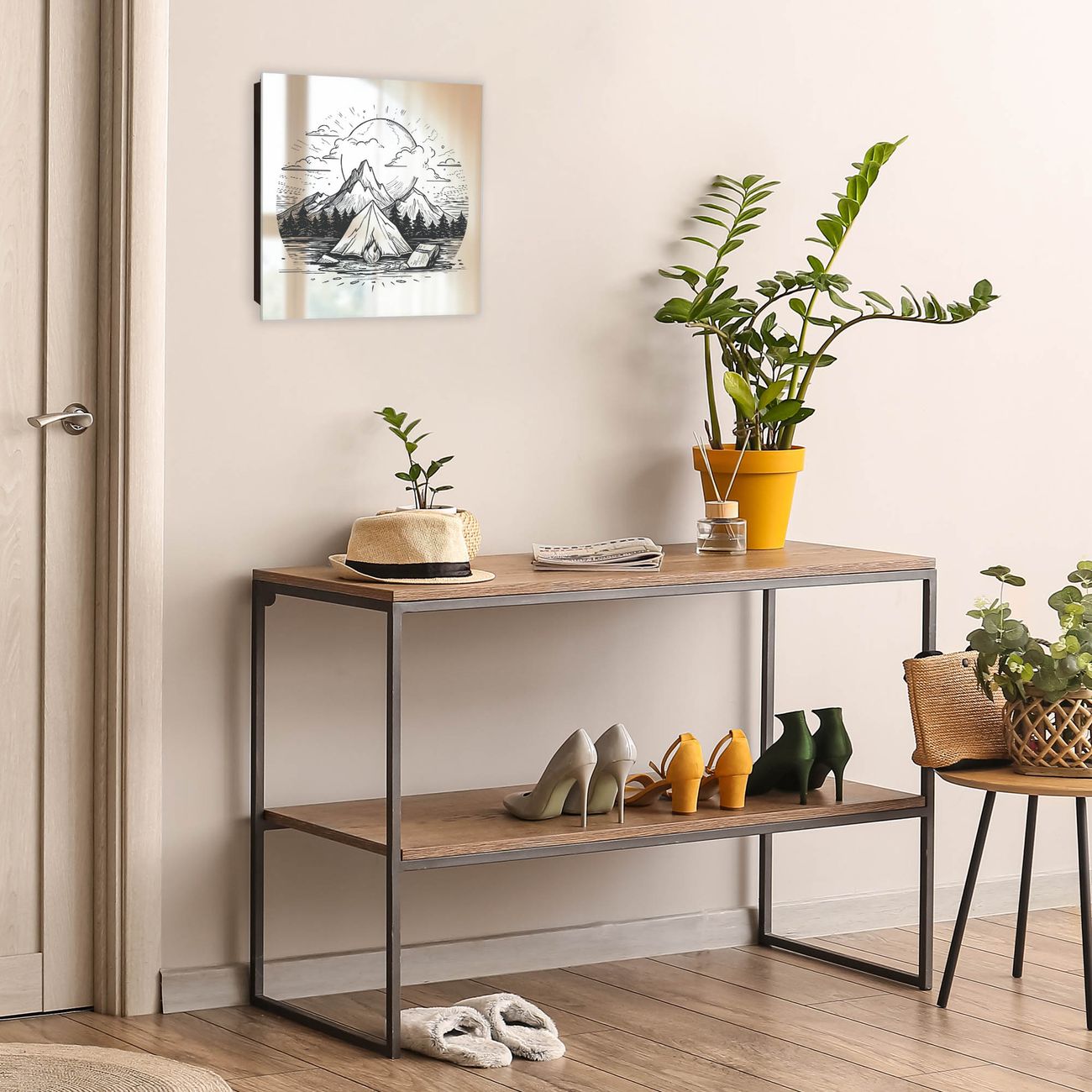 Bringe Ordnung und Stil in deinen Eingangsbereich mit dem banjado Schlüsselkasten mit Spiegel. Die elegante Spiegelfront kombiniert Funktionalität mit modernem Design und macht die Schlüsselaufbewahrung zu einem dekorativen Highlight. ✅ Spiegel Schlüsselaufbewahrung mit Motiv Motiv Camping im Mondschein Der Design-Schlüsselkasten Motiv Motiv Camping im Mondschein bietet Platz für bis zu 50 Schlüssel, die auf 5 stabilen Reihen mit je 10 Haken übersichtlich verstaut werden. Mit seinen kompakten Maßen von 30 x 30 x 5 cm passt die Schlüsselbox perfekt auch in kleinere Räume. Der schwarz lackierte Stahlkorpus mit rechts angeschlagenem Türscharnier harmoniert mit der Spiegelfront und fügt sich nahtlos in jedes Wohnambiente ein. Ob als Schlüsselorganizer für Zuhause oder als praktische Lösung für Büros, Praxen und Gewerbe, der banjado Schlüsselkasten sorgt für Ordnung und Übersicht. Die Spiegelfront verleiht dem Eingangsbereich zusätzliche Funktionalität und lässt Räume optisch größer wirken. Die Schlüsselbox Motiv Motiv Camping im Mondschein zur Wandmontage wird inklusive Befestigungsmaterial geliefert und ist schnell angebracht. So hast du deine Schlüssel jederzeit griffbereit und zugleich stilvoll verstaut. Mit diesem banjado Schlüsselkasten Motiv Motiv Camping im Mondschein kombinierst du praktische Aufbewahrung mit stilvollem Wohndesign. Ob privat oder geschäftlich, die Schlüsselbox sorgt für mehr Ordnung, Übersicht und ein wohnliches Ambiente.Vorteile im Überblick