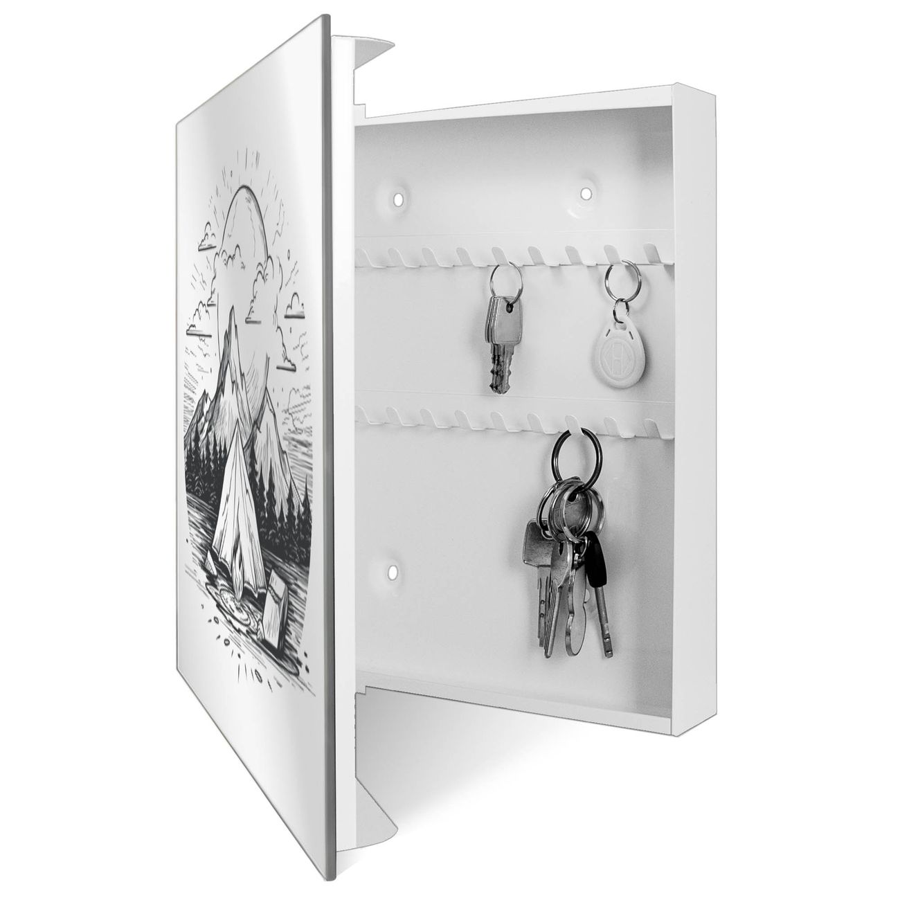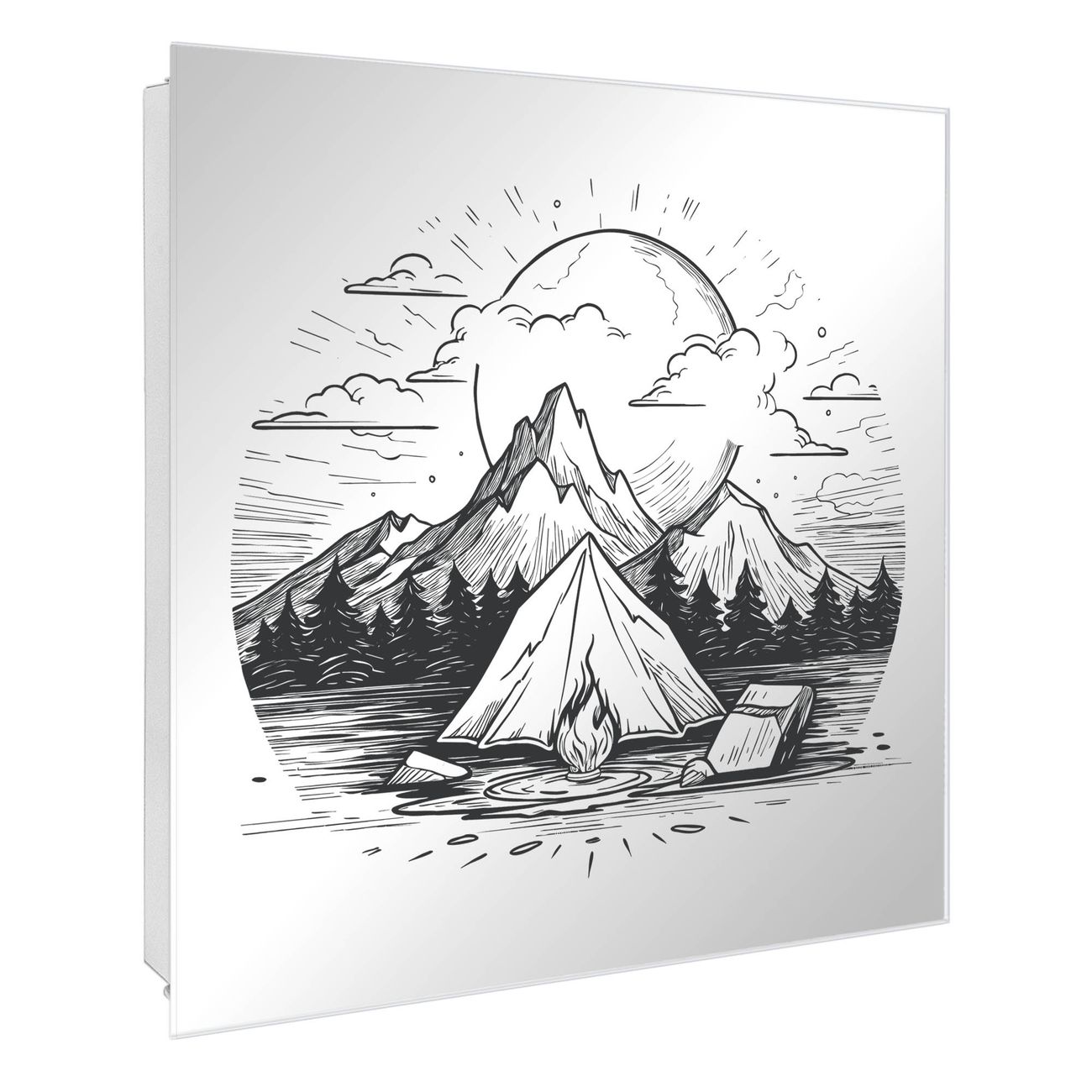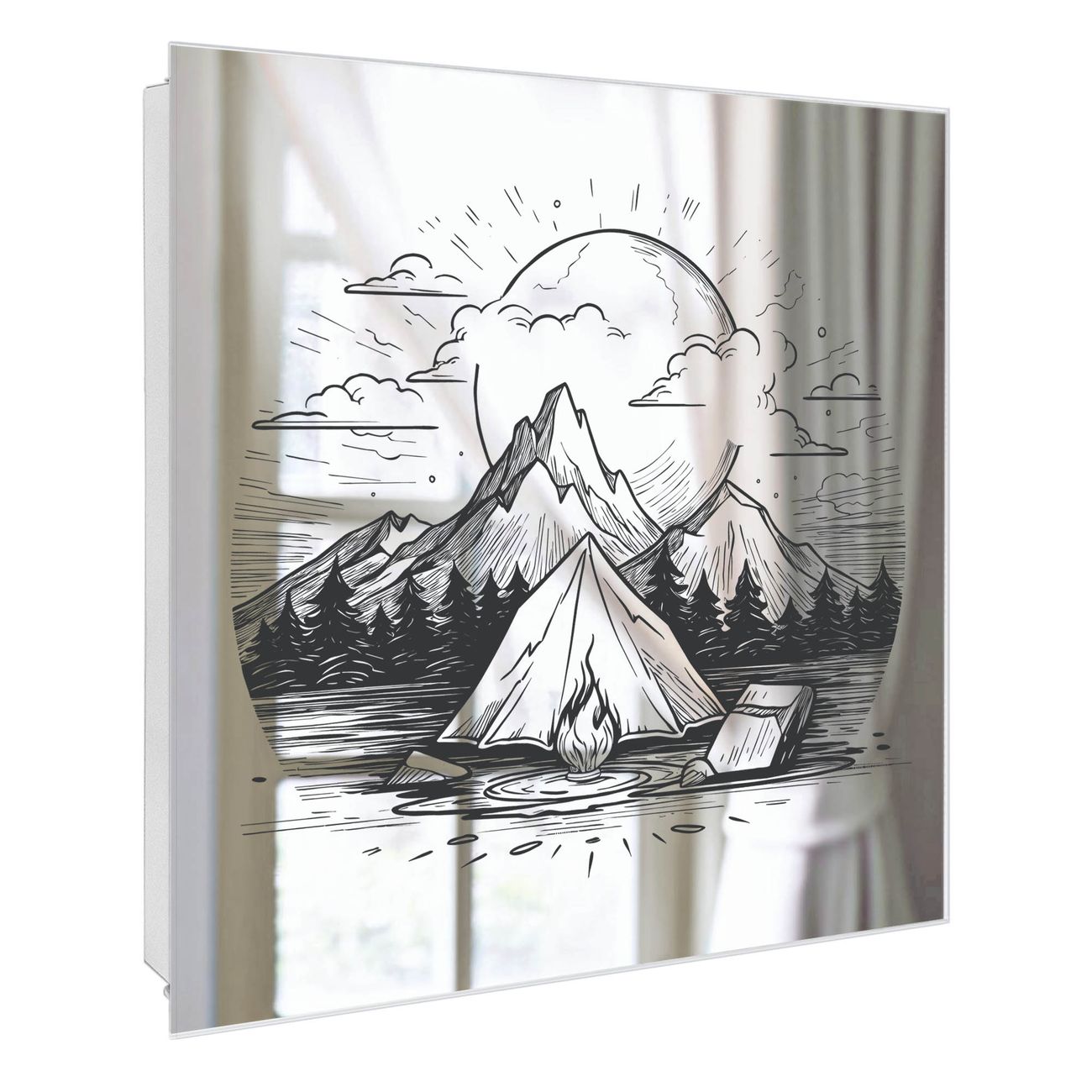 Spiegel Schlüsselkasten - Design Schlüsselbox Motiv Camping im Mondschein