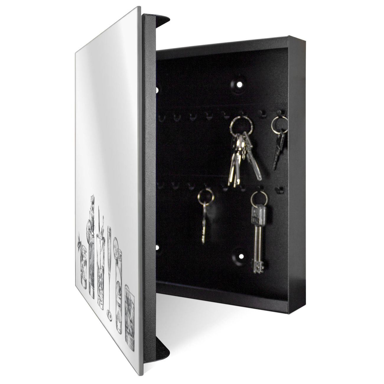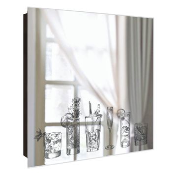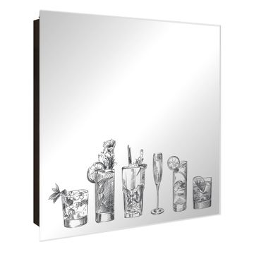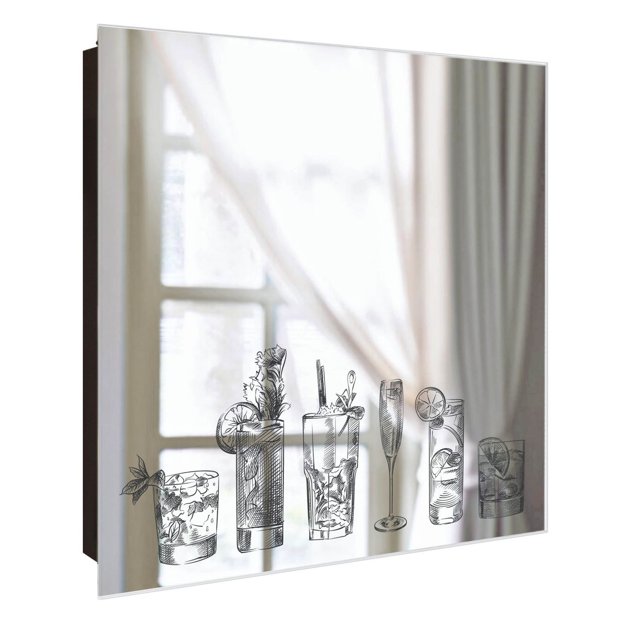 Spiegel Schlüsselkasten - Design Schlüsselbox Motiv Cocktail Skizzen