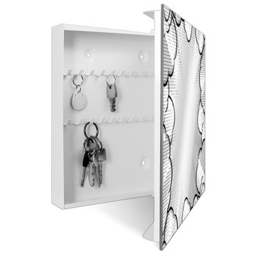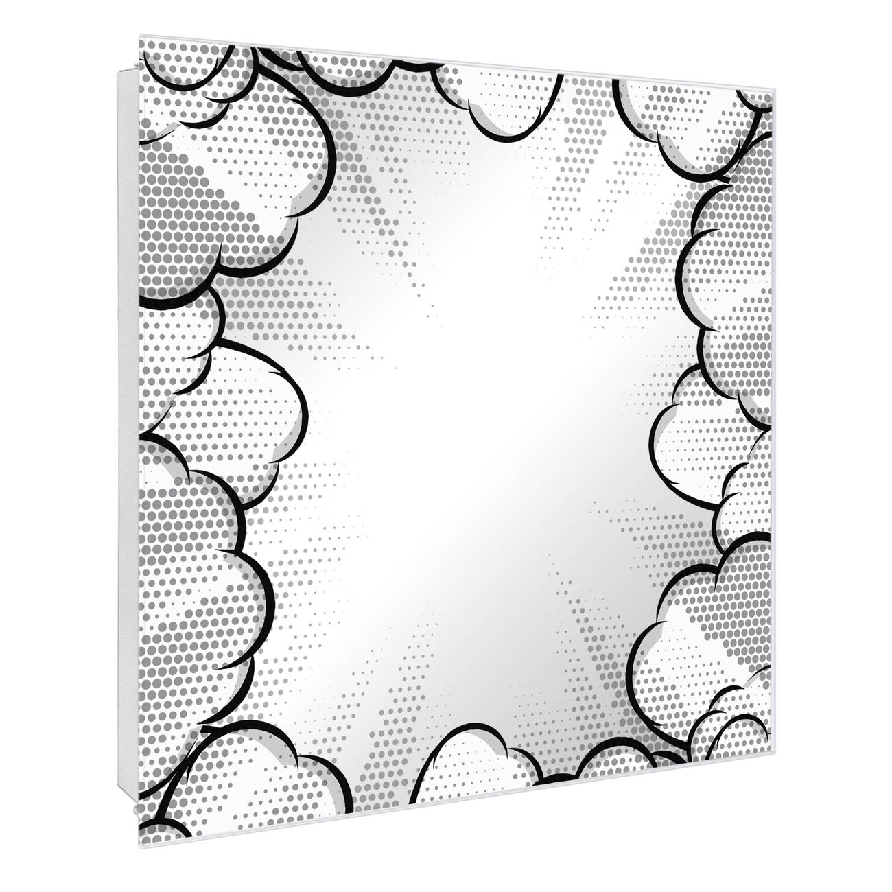 Bringe Ordnung und Stil in deinen Eingangsbereich mit dem banjado Schlüsselkasten mit Spiegel. Die elegante Spiegelfront kombiniert Funktionalität mit modernem Design und macht die Schlüsselaufbewahrung zu einem dekorativen Highlight. ✅ Spiegel Schlüsselaufbewahrung mit Motiv Motiv Comic Explosion Der Design-Schlüsselkasten Motiv Motiv Comic Explosion bietet Platz für bis zu 50 Schlüssel, die auf 5 stabilen Reihen mit je 10 Haken übersichtlich verstaut werden. Mit seinen kompakten Maßen von 30 x 30 x 5 cm passt die Schlüsselbox perfekt auch in kleinere Räume. Der weiß lackierte Stahlkorpus mit rechts angeschlagenem Türscharnier harmoniert mit der Spiegelfront und fügt sich nahtlos in jedes Wohnambiente ein. Ob als Schlüsselorganizer für Zuhause oder als praktische Lösung für Büros, Praxen und Gewerbe, der banjado Schlüsselkasten sorgt für Ordnung und Übersicht. Die Spiegelfront verleiht dem Eingangsbereich zusätzliche Funktionalität und lässt Räume optisch größer wirken. Die Schlüsselbox Motiv Motiv Comic Explosion zur Wandmontage wird inklusive Befestigungsmaterial geliefert und ist schnell angebracht. So hast du deine Schlüssel jederzeit griffbereit und zugleich stilvoll verstaut. Mit diesem banjado Schlüsselkasten Motiv Motiv Comic Explosion kombinierst du praktische Aufbewahrung mit stilvollem Wohndesign. Ob privat oder geschäftlich, die Schlüsselbox sorgt für mehr Ordnung, Übersicht und ein wohnliches Ambiente.Vorteile im Überblick