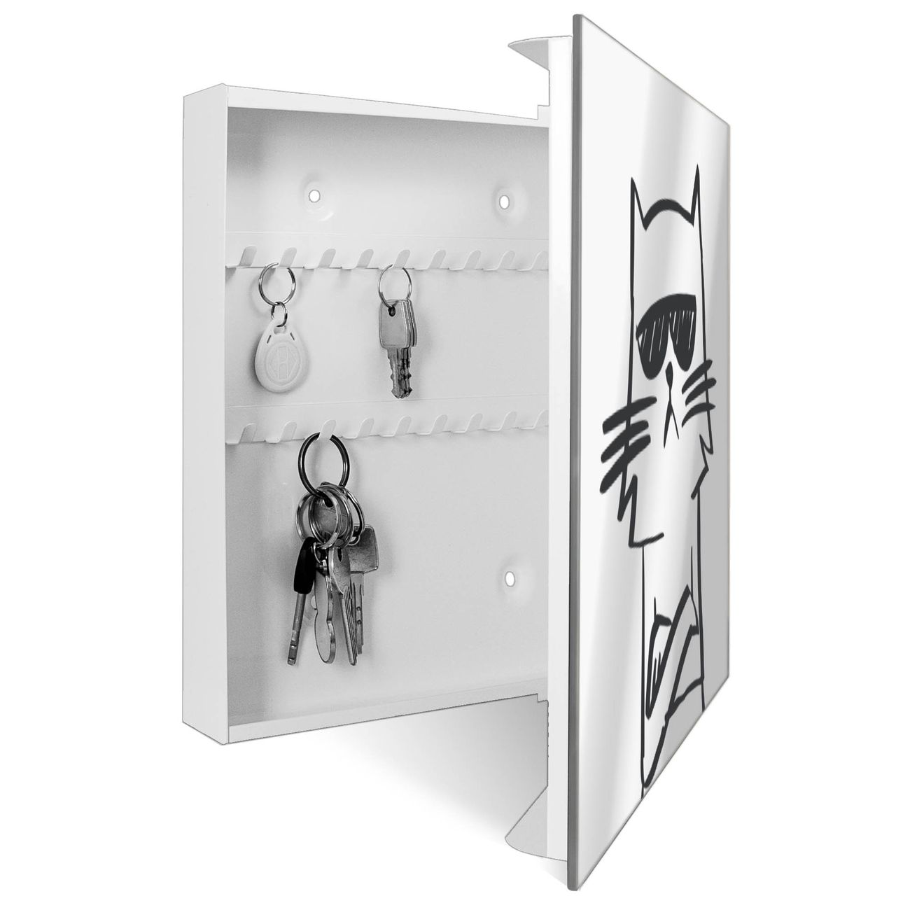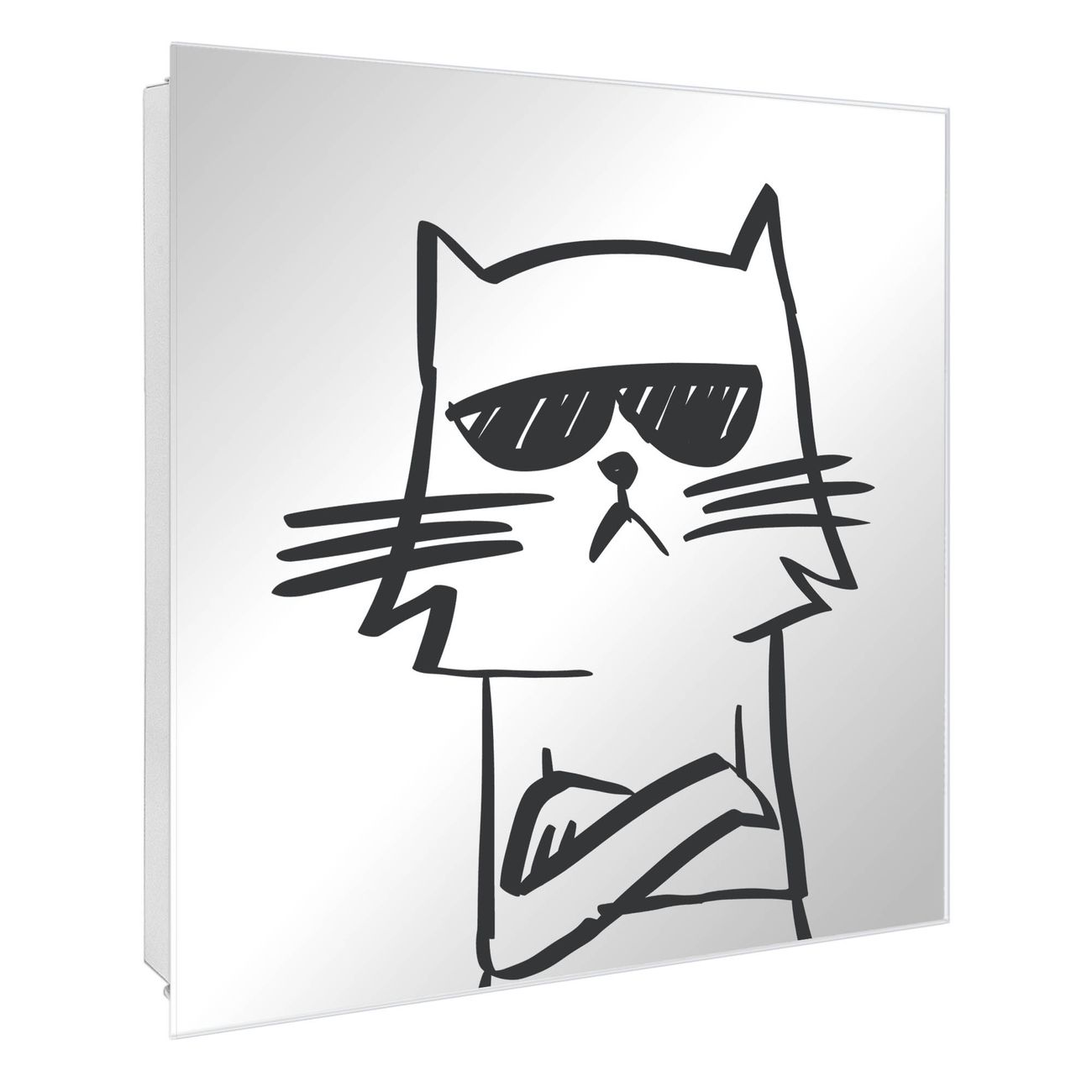 Spiegel Schlüsselkasten - Design Schlüsselbox Motiv Coole Katze