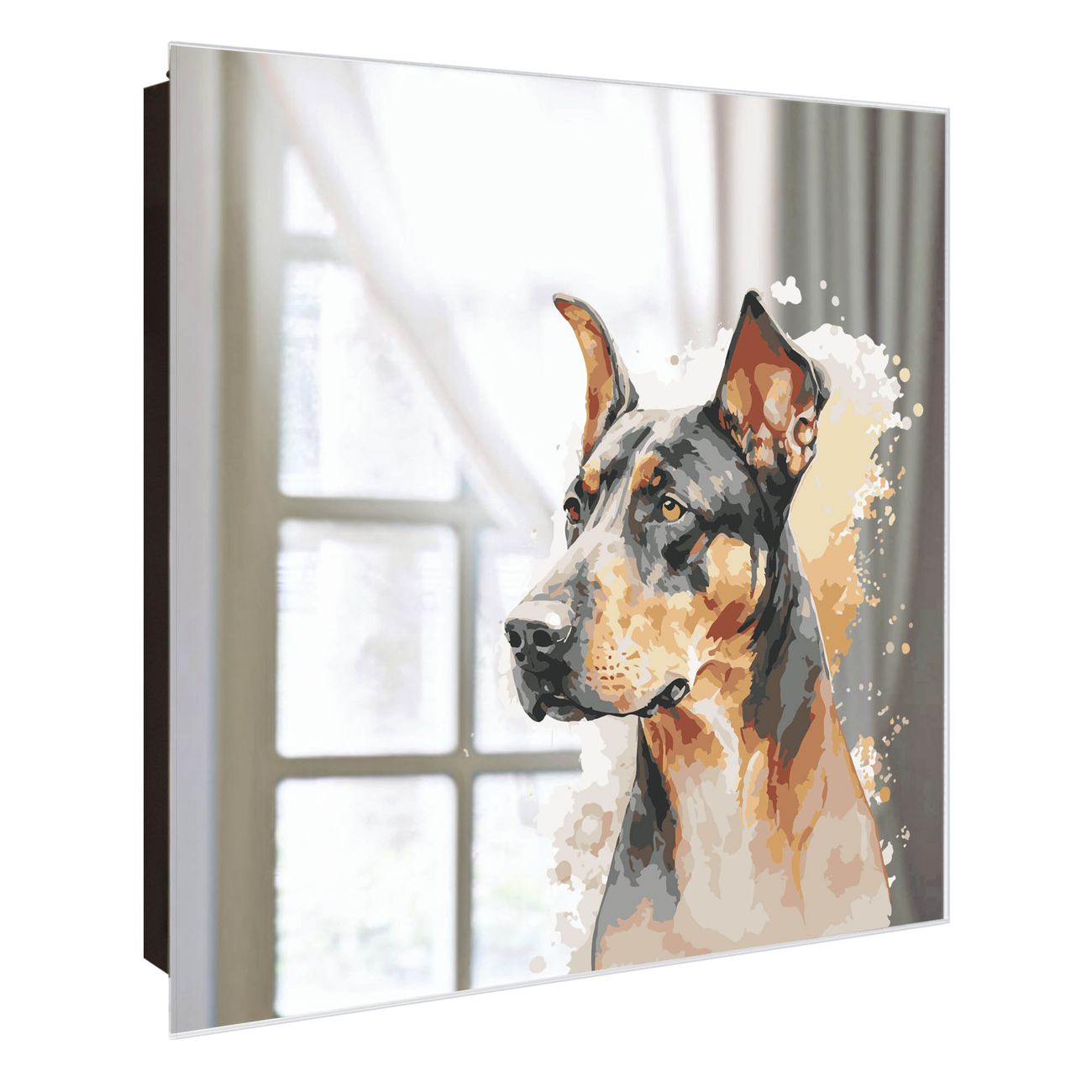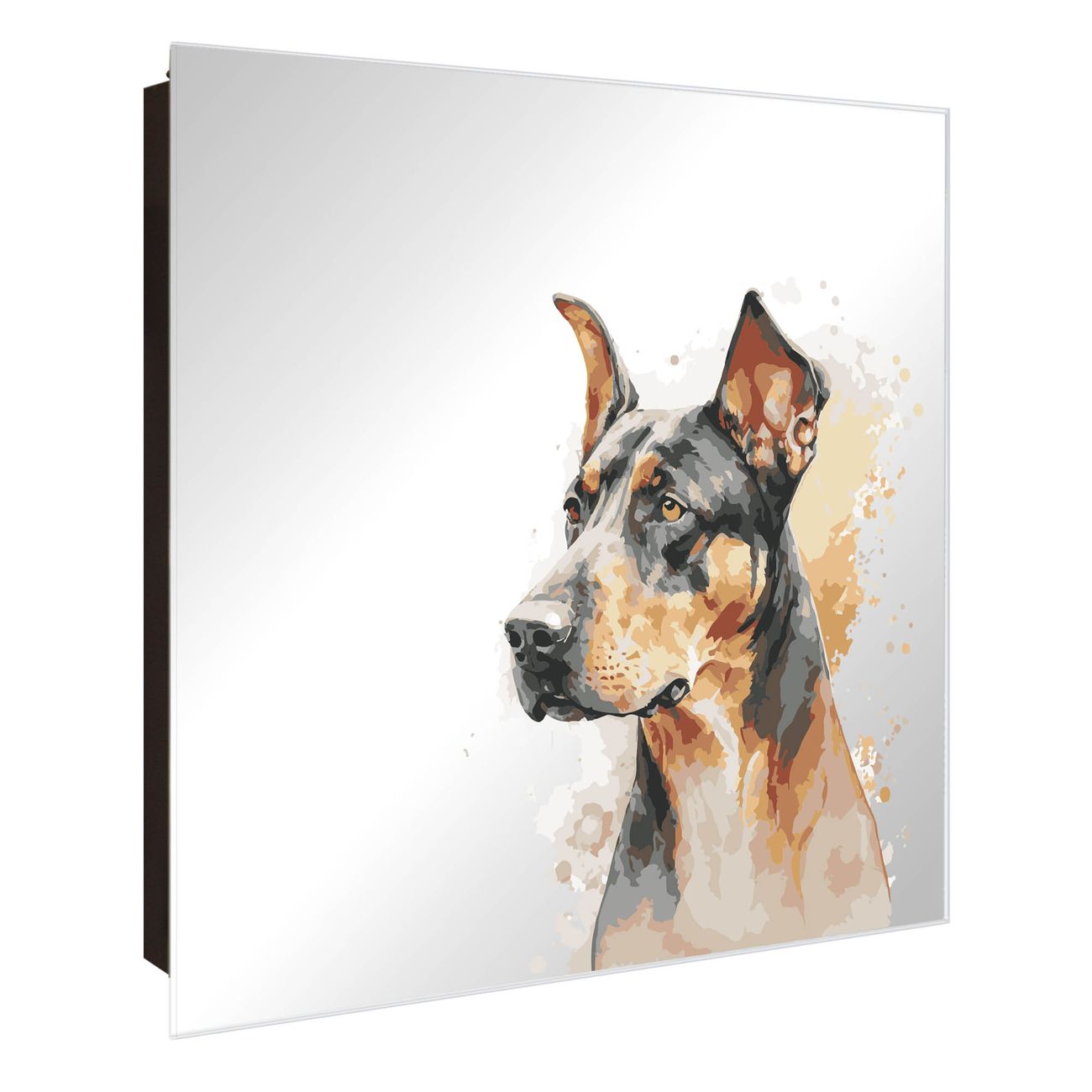 Spiegel Schlüsselkasten - Design Schlüsselbox Motiv Dobermann-Portrait