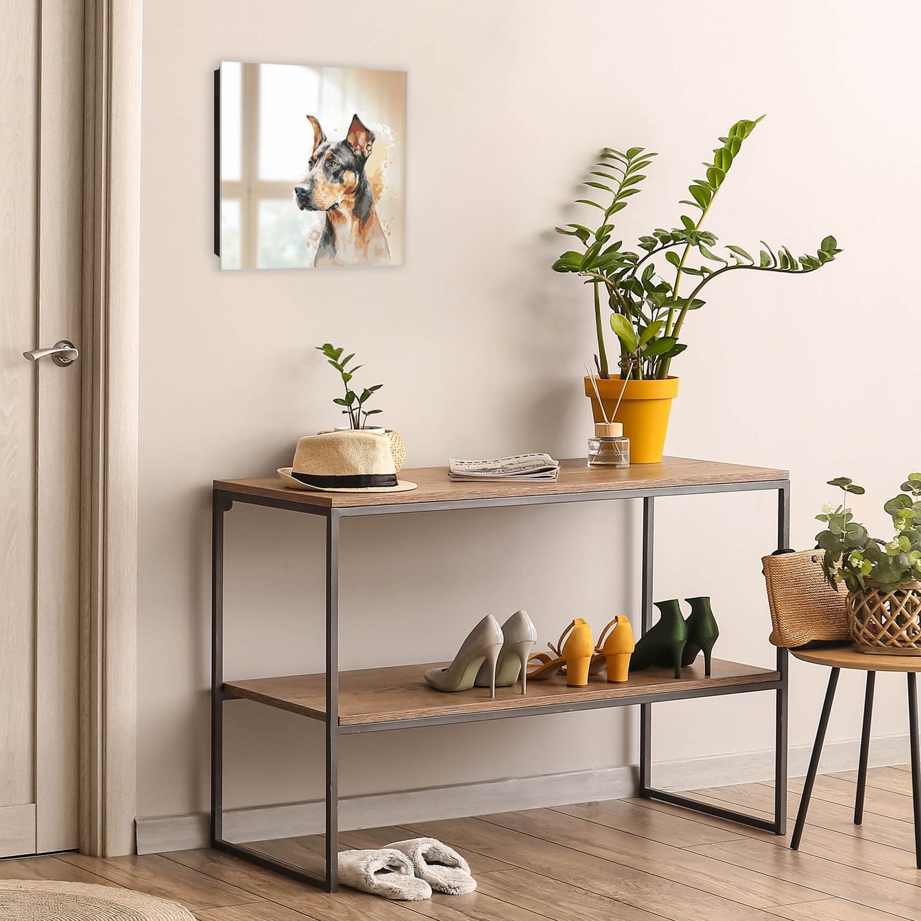 Bringe Ordnung und Stil in deinen Eingangsbereich mit dem banjado Schlüsselkasten mit Spiegel. Die elegante Spiegelfront kombiniert Funktionalität mit modernem Design und macht die Schlüsselaufbewahrung zu einem dekorativen Highlight. ✅ Spiegel Schlüsselaufbewahrung mit Motiv Motiv Dobermann-Portrait Der Design-Schlüsselkasten Motiv Motiv Dobermann-Portrait bietet Platz für bis zu 50 Schlüssel, die auf 5 stabilen Reihen mit je 10 Haken übersichtlich verstaut werden. Mit seinen kompakten Maßen von 30 x 30 x 5 cm passt die Schlüsselbox perfekt auch in kleinere Räume. Der schwarz lackierte Stahlkorpus mit rechts angeschlagenem Türscharnier harmoniert mit der Spiegelfront und fügt sich nahtlos in jedes Wohnambiente ein. Ob als Schlüsselorganizer für Zuhause oder als praktische Lösung für Büros, Praxen und Gewerbe, der banjado Schlüsselkasten sorgt für Ordnung und Übersicht. Die Spiegelfront verleiht dem Eingangsbereich zusätzliche Funktionalität und lässt Räume optisch größer wirken. Die Schlüsselbox Motiv Motiv Dobermann-Portrait zur Wandmontage wird inklusive Befestigungsmaterial geliefert und ist schnell angebracht. So hast du deine Schlüssel jederzeit griffbereit und zugleich stilvoll verstaut. Mit diesem banjado Schlüsselkasten Motiv Motiv Dobermann-Portrait kombinierst du praktische Aufbewahrung mit stilvollem Wohndesign. Ob privat oder geschäftlich, die Schlüsselbox sorgt für mehr Ordnung, Übersicht und ein wohnliches Ambiente.Vorteile im Überblick