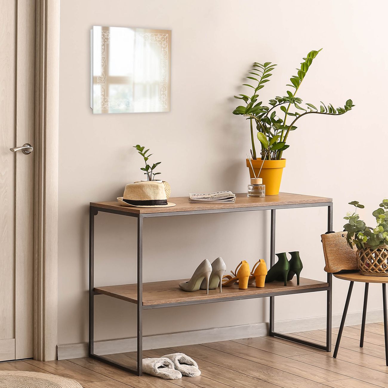 Bringe Ordnung und Stil in deinen Eingangsbereich mit dem banjado Schlüsselkasten mit Spiegel. Die elegante Spiegelfront kombiniert Funktionalität mit modernem Design und macht die Schlüsselaufbewahrung zu einem dekorativen Highlight. ✅ Spiegel Schlüsselaufbewahrung mit Motiv Motiv Elegantes Ornament Der Design-Schlüsselkasten Motiv Motiv Elegantes Ornament bietet Platz für bis zu 50 Schlüssel, die auf 5 stabilen Reihen mit je 10 Haken übersichtlich verstaut werden. Mit seinen kompakten Maßen von 30 x 30 x 5 cm passt die Schlüsselbox perfekt auch in kleinere Räume. Der weiß lackierte Stahlkorpus mit rechts angeschlagenem Türscharnier harmoniert mit der Spiegelfront und fügt sich nahtlos in jedes Wohnambiente ein. Ob als Schlüsselorganizer für Zuhause oder als praktische Lösung für Büros, Praxen und Gewerbe, der banjado Schlüsselkasten sorgt für Ordnung und Übersicht. Die Spiegelfront verleiht dem Eingangsbereich zusätzliche Funktionalität und lässt Räume optisch größer wirken. Die Schlüsselbox Motiv Motiv Elegantes Ornament zur Wandmontage wird inklusive Befestigungsmaterial geliefert und ist schnell angebracht. So hast du deine Schlüssel jederzeit griffbereit und zugleich stilvoll verstaut. Mit diesem banjado Schlüsselkasten Motiv Motiv Elegantes Ornament kombinierst du praktische Aufbewahrung mit stilvollem Wohndesign. Ob privat oder geschäftlich, die Schlüsselbox sorgt für mehr Ordnung, Übersicht und ein wohnliches Ambiente.Vorteile im Überblick