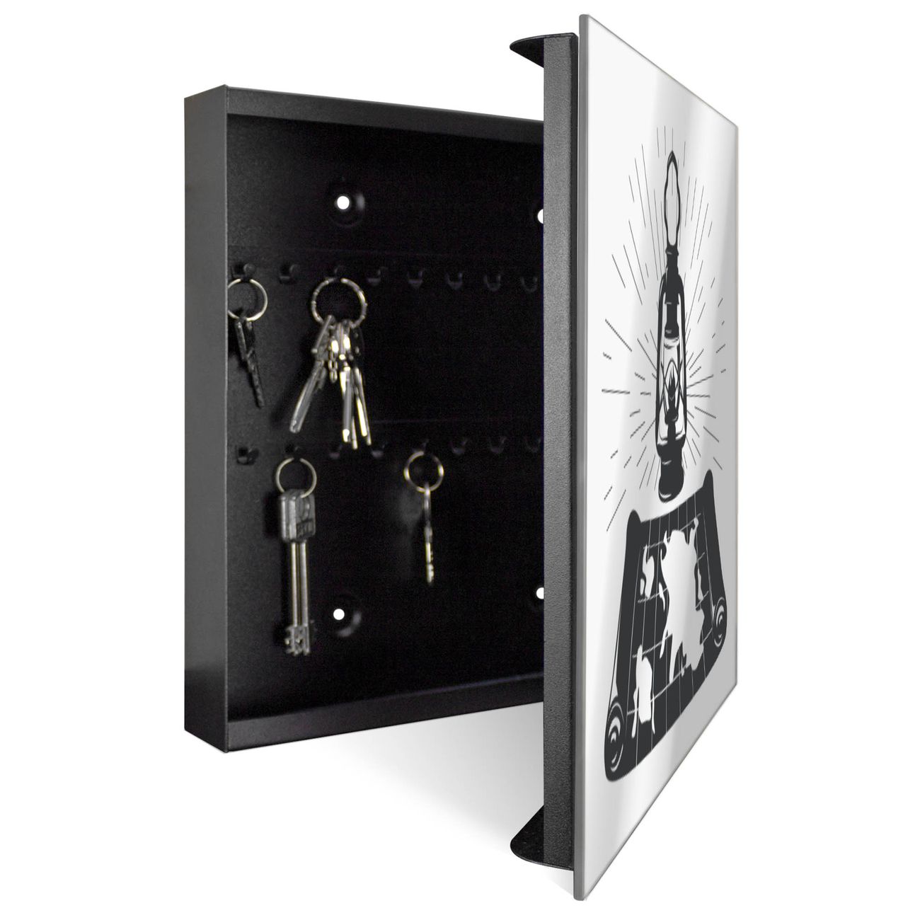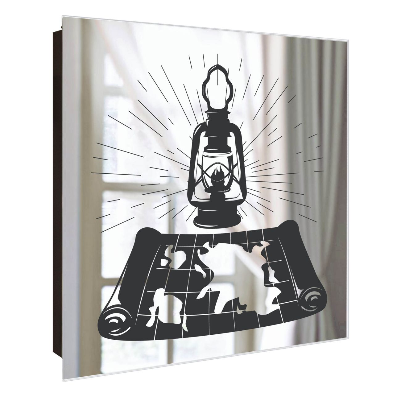 Spiegel Schlüsselkasten - Design Schlüsselbox Motiv Entdecker-Laterne