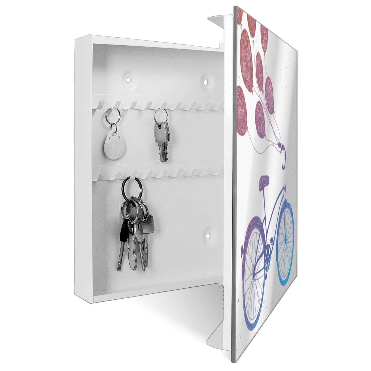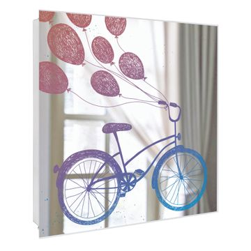 Spiegel Schlüsselkasten - Design Schlüsselbox Motiv Fahrrad mit Luftballons