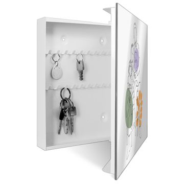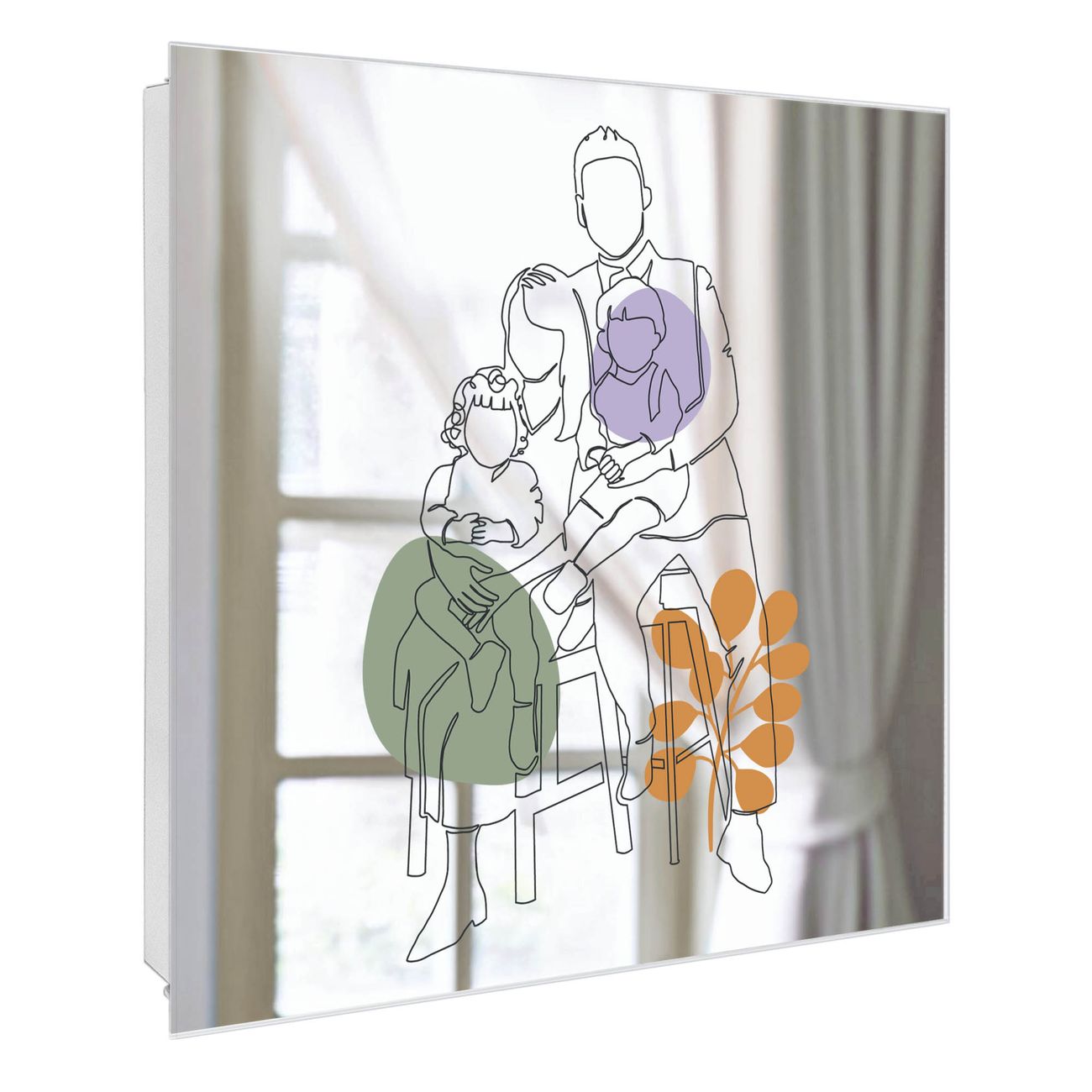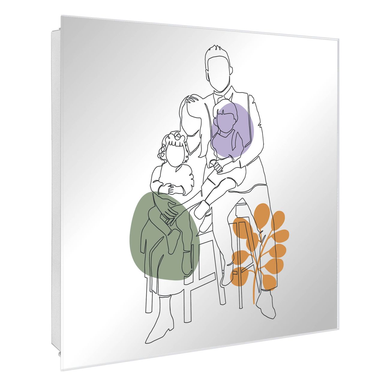 Spiegel Schlüsselkasten - Design Schlüsselbox Motiv Familienglück Illustration