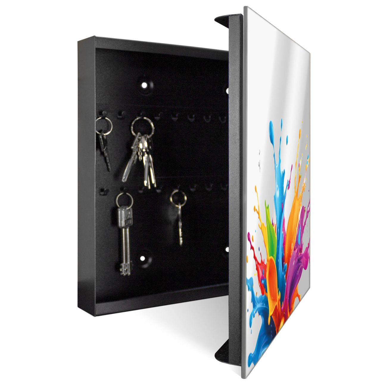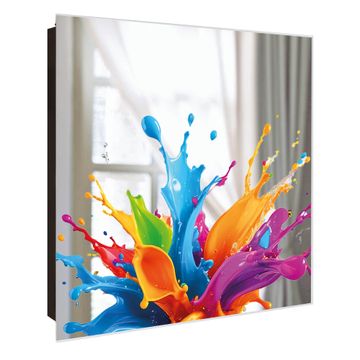 Spiegel Schlüsselkasten - Design Schlüsselbox Motiv Farbspritzer-Explosion