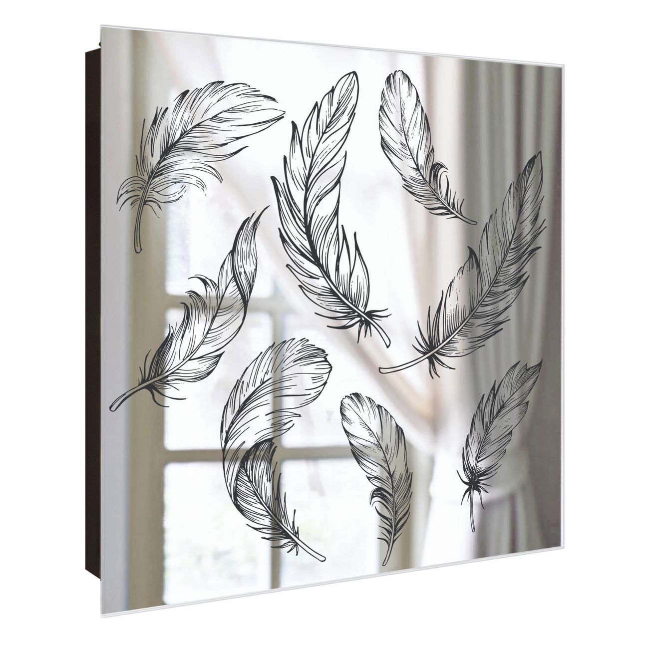 Spiegel Schlüsselkasten - Design Schlüsselbox Motiv Federn 2