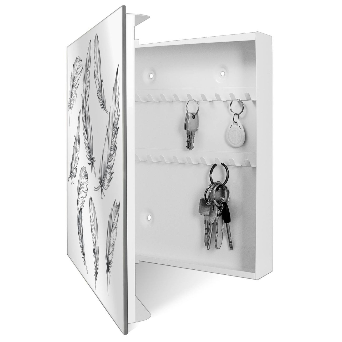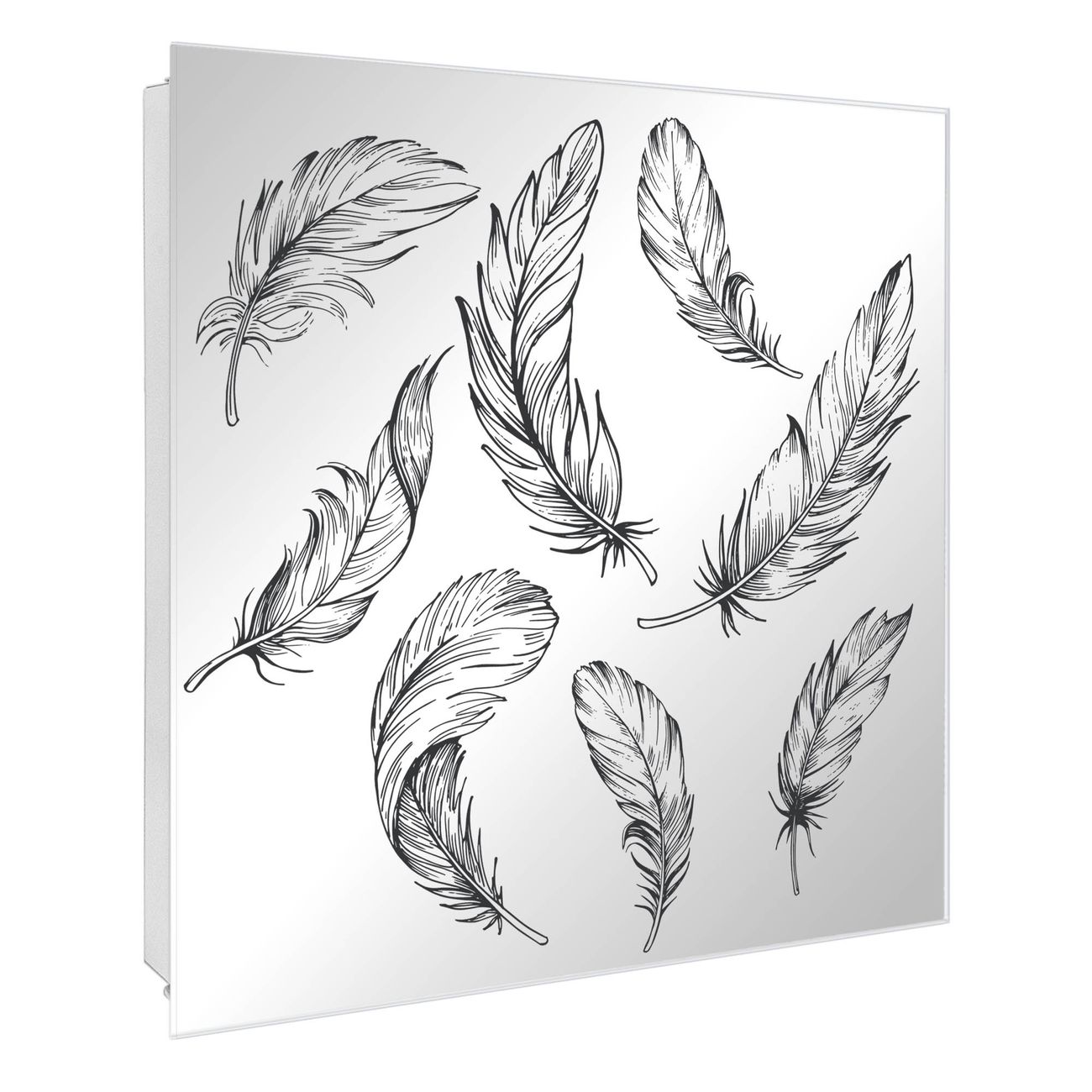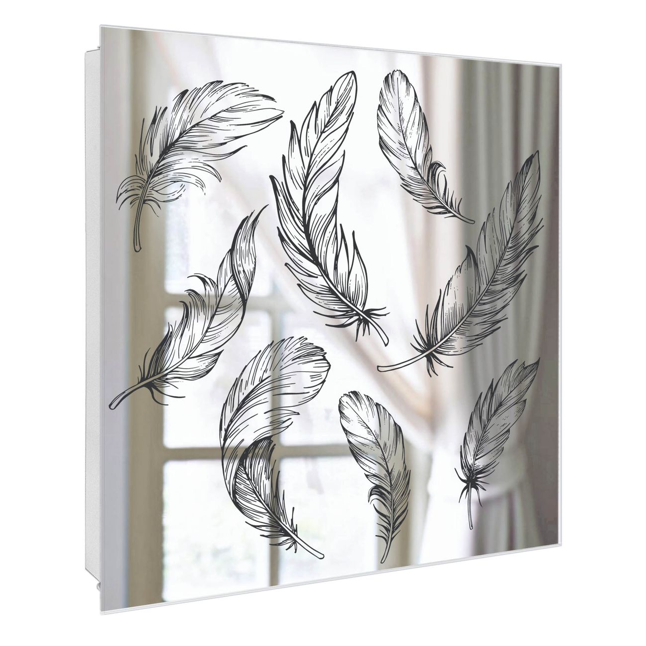 Spiegel Schlüsselkasten - Design Schlüsselbox Motiv Federn 2