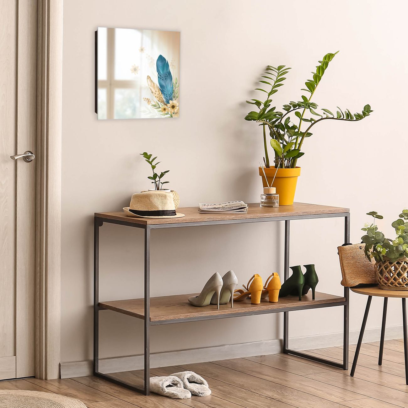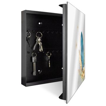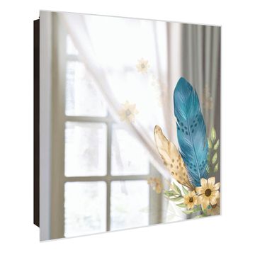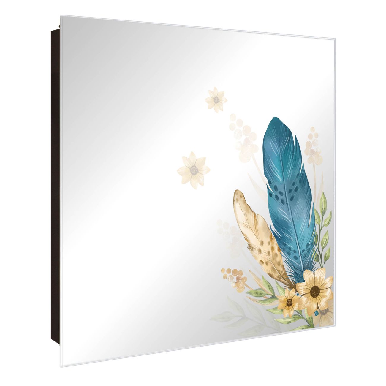 Spiegel Schlüsselkasten - Design Schlüsselbox Motiv Federn und Blüten