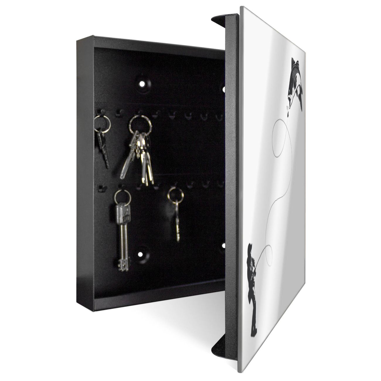 Bringe Ordnung und Stil in deinen Eingangsbereich mit dem banjado Schlüsselkasten mit Spiegel. Die elegante Spiegelfront kombiniert Funktionalität mit modernem Design und macht die Schlüsselaufbewahrung zu einem dekorativen Highlight. ✅ Spiegel Schlüsselaufbewahrung mit Motiv Motiv Fischerfreude Der Design-Schlüsselkasten Motiv Motiv Fischerfreude bietet Platz für bis zu 50 Schlüssel, die auf 5 stabilen Reihen mit je 10 Haken übersichtlich verstaut werden. Mit seinen kompakten Maßen von 30 x 30 x 5 cm passt die Schlüsselbox perfekt auch in kleinere Räume. Der schwarz lackierte Stahlkorpus mit rechts angeschlagenem Türscharnier harmoniert mit der Spiegelfront und fügt sich nahtlos in jedes Wohnambiente ein. Ob als Schlüsselorganizer für Zuhause oder als praktische Lösung für Büros, Praxen und Gewerbe, der banjado Schlüsselkasten sorgt für Ordnung und Übersicht. Die Spiegelfront verleiht dem Eingangsbereich zusätzliche Funktionalität und lässt Räume optisch größer wirken. Die Schlüsselbox Motiv Motiv Fischerfreude zur Wandmontage wird inklusive Befestigungsmaterial geliefert und ist schnell angebracht. So hast du deine Schlüssel jederzeit griffbereit und zugleich stilvoll verstaut. Mit diesem banjado Schlüsselkasten Motiv Motiv Fischerfreude kombinierst du praktische Aufbewahrung mit stilvollem Wohndesign. Ob privat oder geschäftlich, die Schlüsselbox sorgt für mehr Ordnung, Übersicht und ein wohnliches Ambiente.Vorteile im Überblick