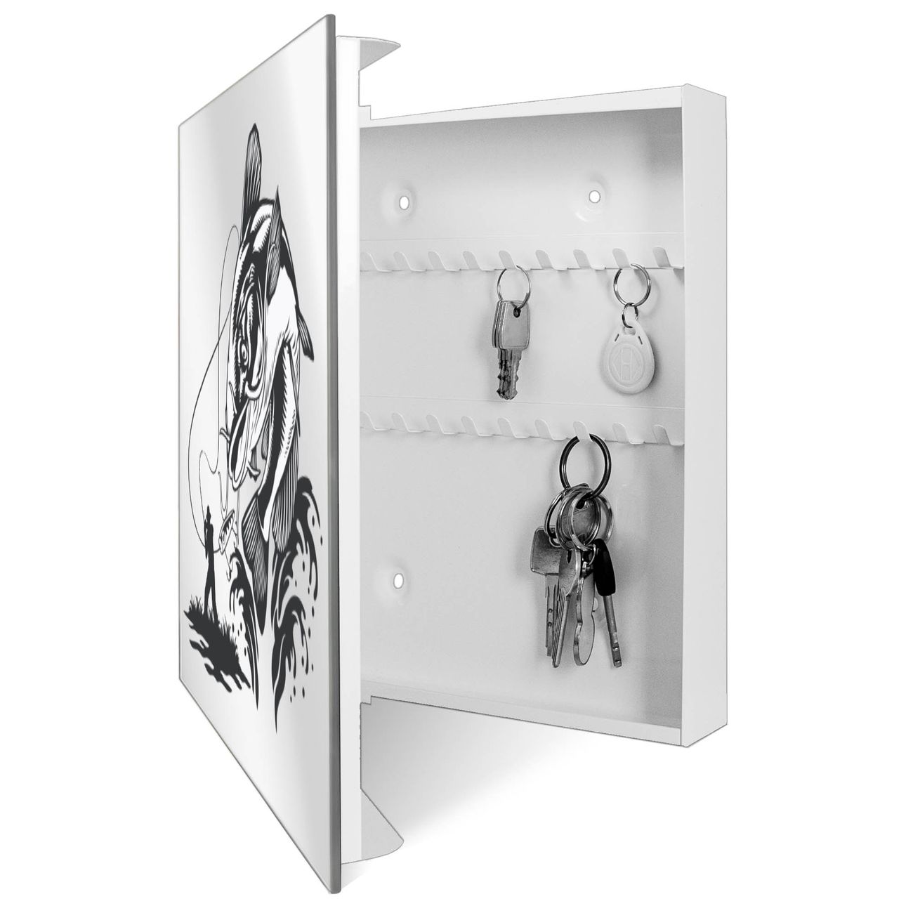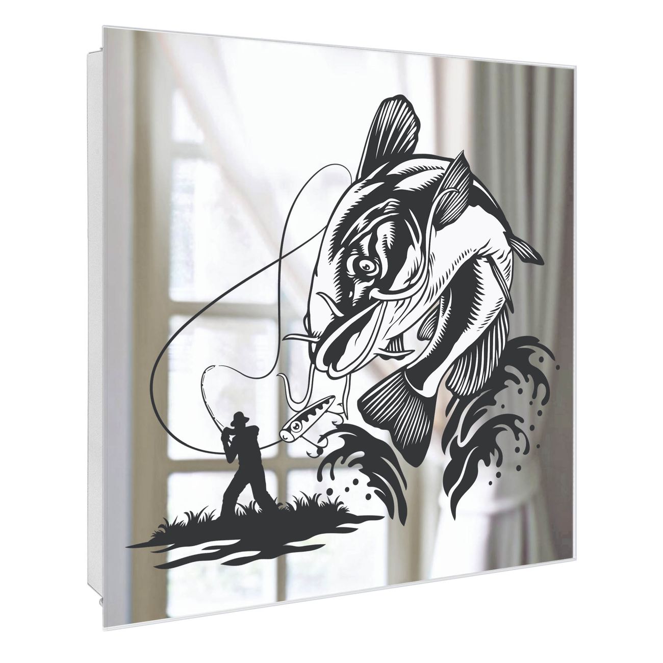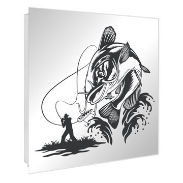 Spiegel Schlüsselkasten - Design Schlüsselbox Motiv Fischfang Abenteuer