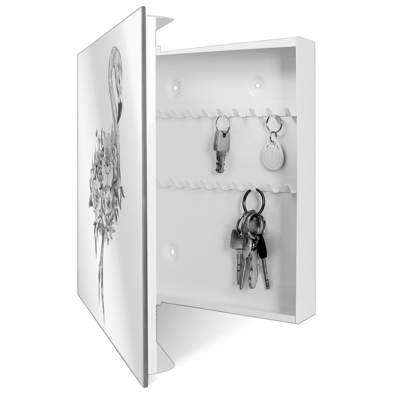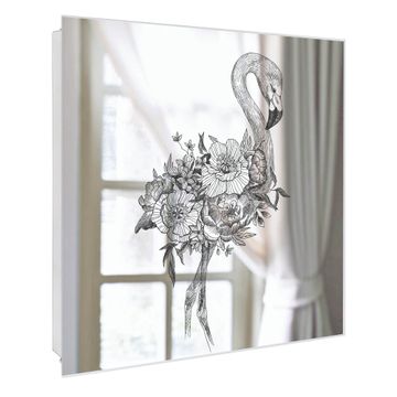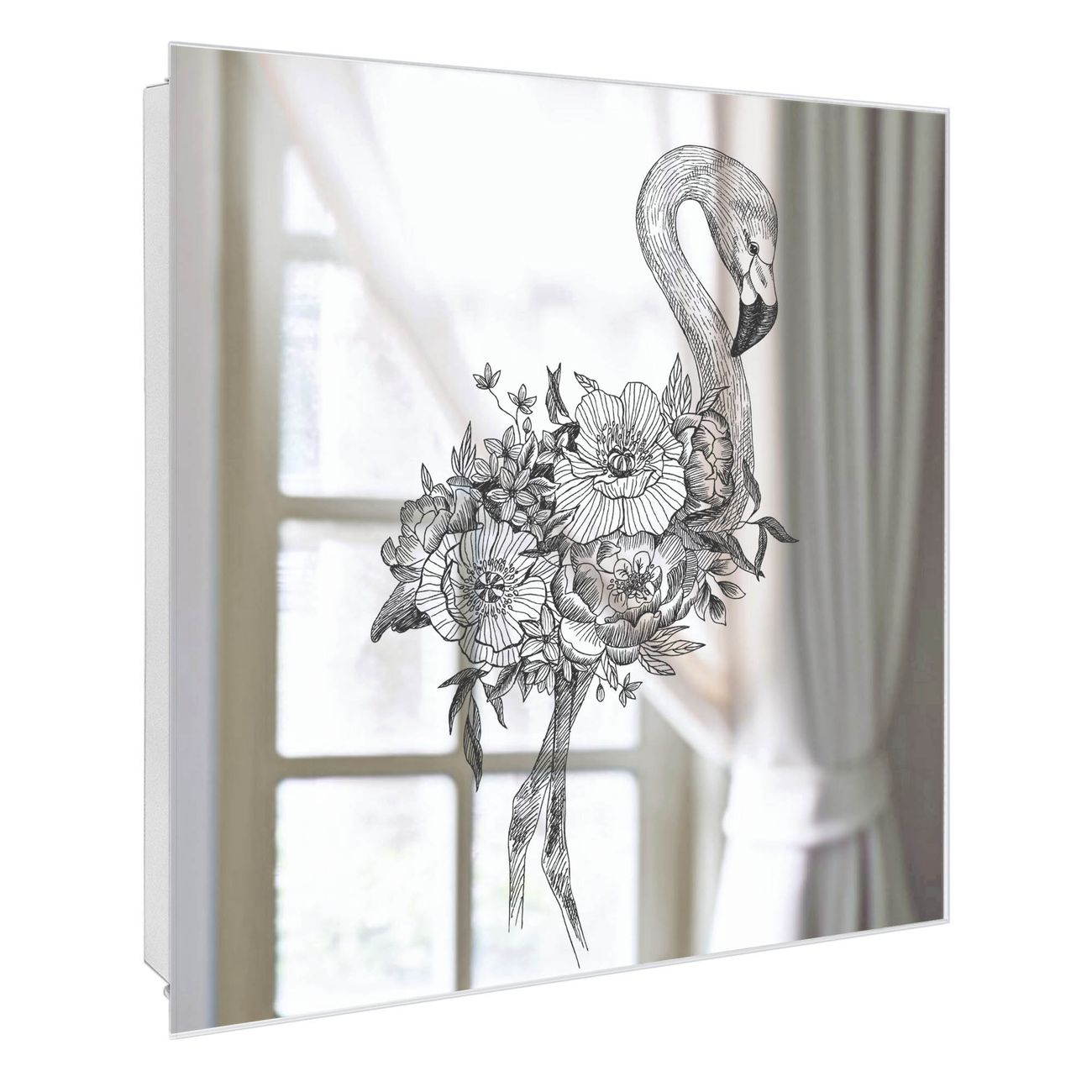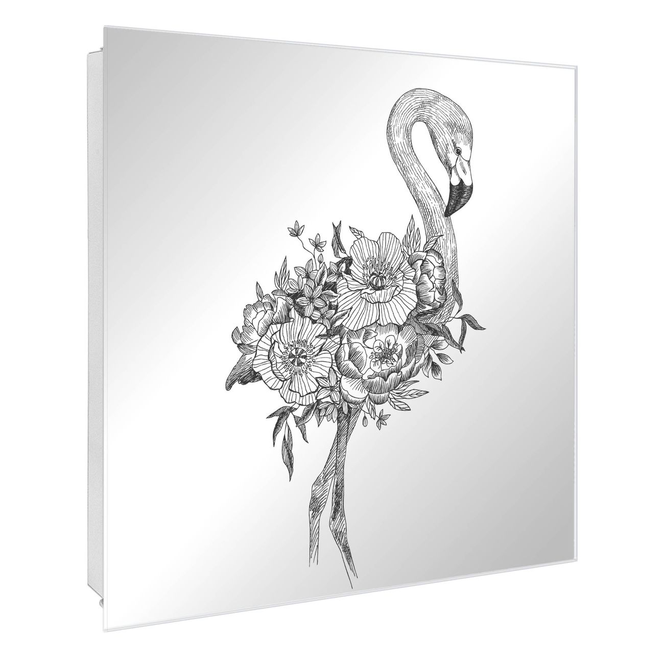 Spiegel Schlüsselkasten - Design Schlüsselbox Motiv Flamingo Blumen 2