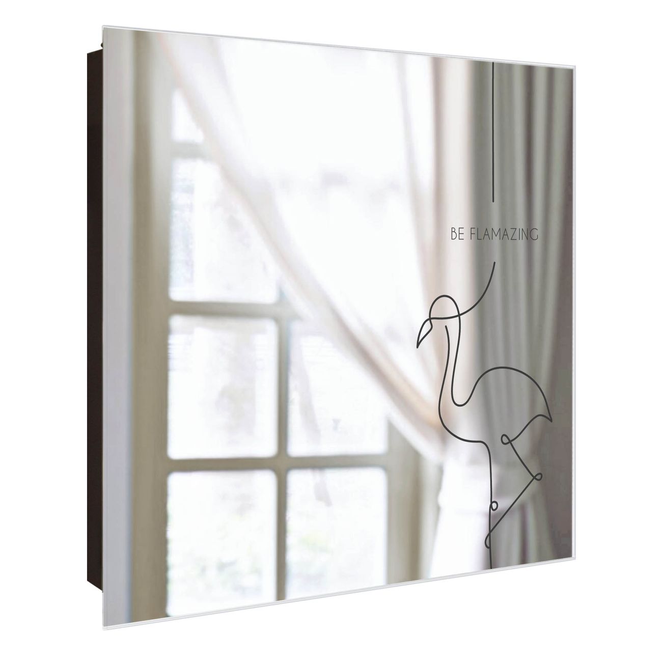 Spiegel Schlüsselkasten - Design Schlüsselbox Motiv Flamingo Einlinienzeichnung