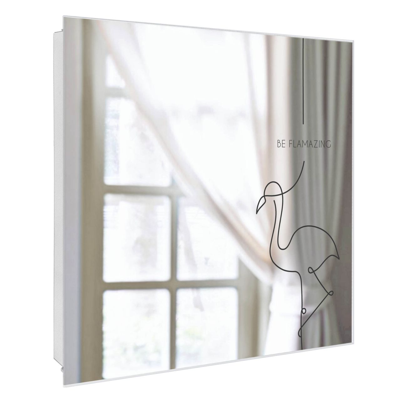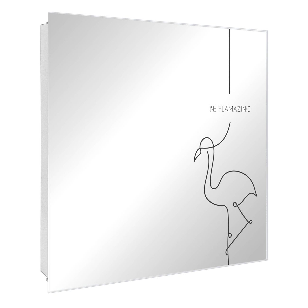 Spiegel Schlüsselkasten - Design Schlüsselbox Motiv Flamingo Einlinienzeichnung