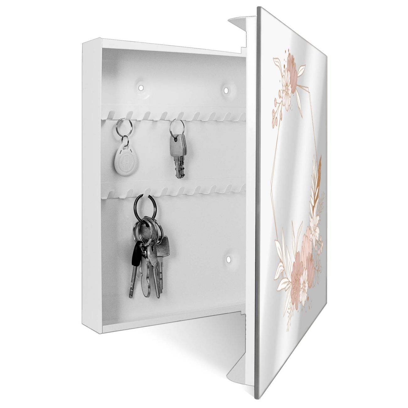 Spiegel Schlüsselkasten - Design Schlüsselbox Motiv Floral Geometrie
