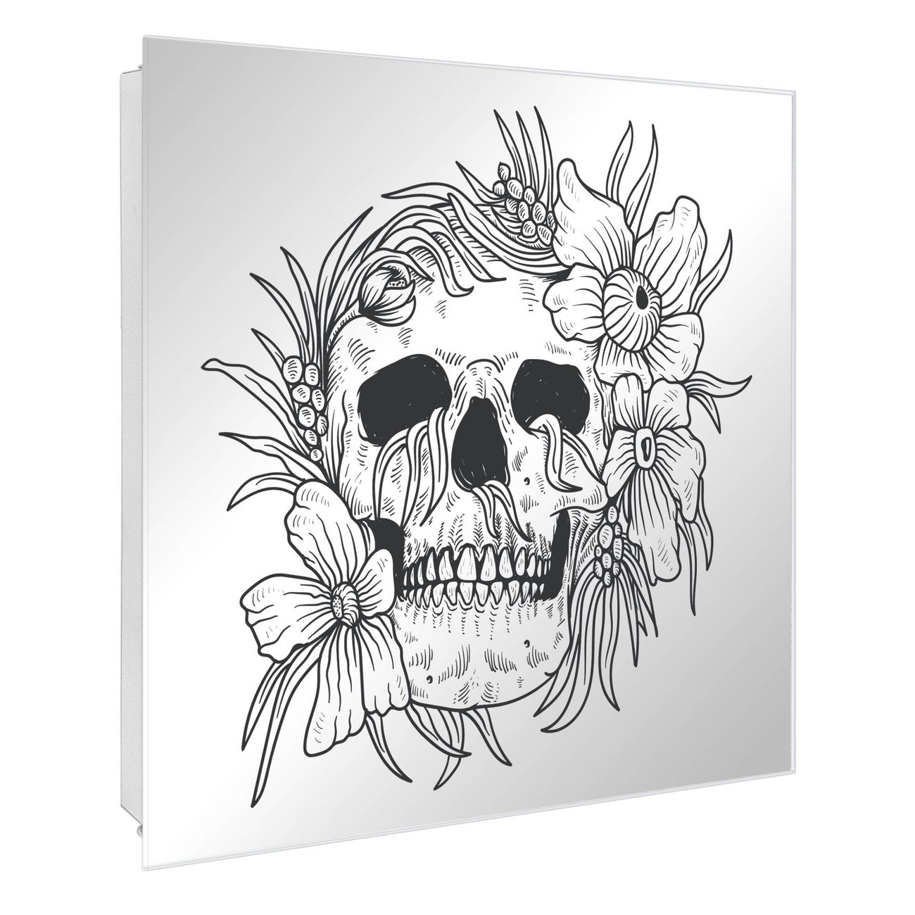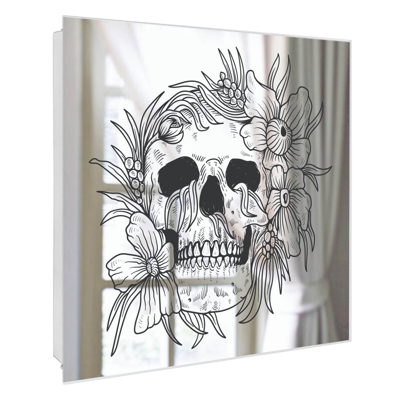 Spiegel Schlüsselkasten - Design Schlüsselbox Motiv Floral Skull 2