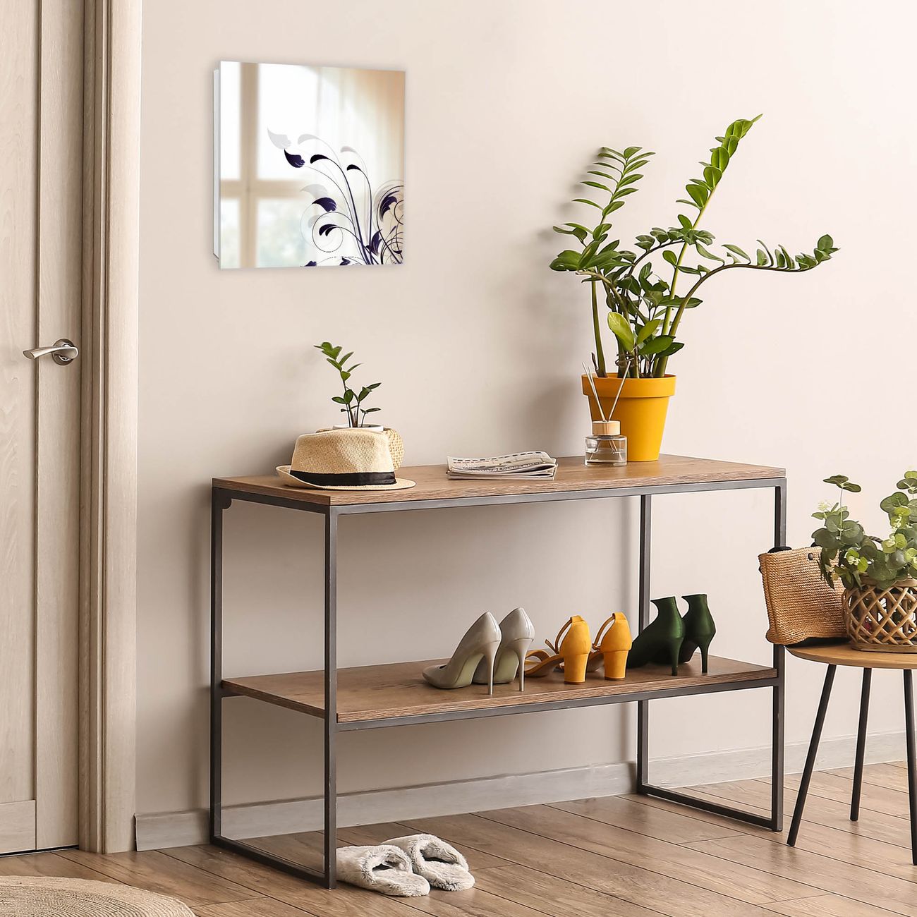 Bringe Ordnung und Stil in deinen Eingangsbereich mit dem banjado Schlüsselkasten mit Spiegel. Die elegante Spiegelfront kombiniert Funktionalität mit modernem Design und macht die Schlüsselaufbewahrung zu einem dekorativen Highlight. ✅ Spiegel Schlüsselaufbewahrung mit Motiv Motiv Florale Eleganz Der Design-Schlüsselkasten Motiv Motiv Florale Eleganz bietet Platz für bis zu 50 Schlüssel, die auf 5 stabilen Reihen mit je 10 Haken übersichtlich verstaut werden. Mit seinen kompakten Maßen von 30 x 30 x 5 cm passt die Schlüsselbox perfekt auch in kleinere Räume. Der weiß lackierte Stahlkorpus mit rechts angeschlagenem Türscharnier harmoniert mit der Spiegelfront und fügt sich nahtlos in jedes Wohnambiente ein. Ob als Schlüsselorganizer für Zuhause oder als praktische Lösung für Büros, Praxen und Gewerbe, der banjado Schlüsselkasten sorgt für Ordnung und Übersicht. Die Spiegelfront verleiht dem Eingangsbereich zusätzliche Funktionalität und lässt Räume optisch größer wirken. Die Schlüsselbox Motiv Motiv Florale Eleganz zur Wandmontage wird inklusive Befestigungsmaterial geliefert und ist schnell angebracht. So hast du deine Schlüssel jederzeit griffbereit und zugleich stilvoll verstaut. Mit diesem banjado Schlüsselkasten Motiv Motiv Florale Eleganz kombinierst du praktische Aufbewahrung mit stilvollem Wohndesign. Ob privat oder geschäftlich, die Schlüsselbox sorgt für mehr Ordnung, Übersicht und ein wohnliches Ambiente.Vorteile im Überblick