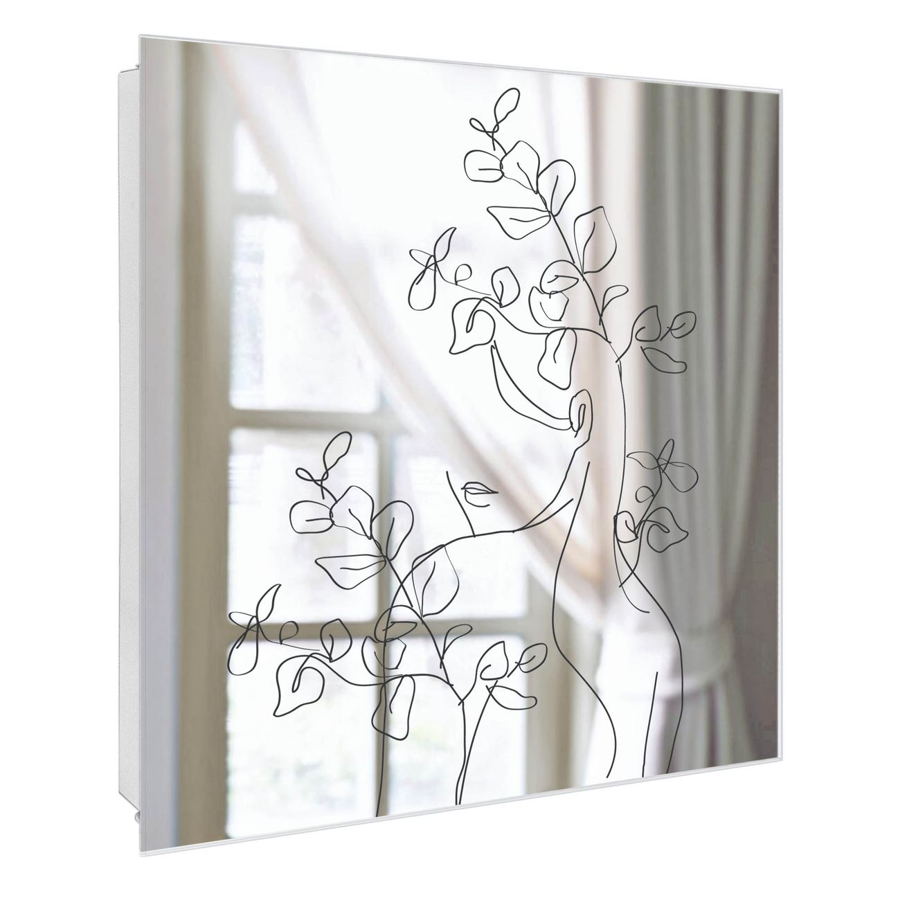 Bringe Ordnung und Stil in deinen Eingangsbereich mit dem banjado Schlüsselkasten mit Spiegel. Die elegante Spiegelfront kombiniert Funktionalität mit modernem Design und macht die Schlüsselaufbewahrung zu einem dekorativen Highlight. ✅ Spiegel Schlüsselaufbewahrung mit Motiv Motiv Florale Silhouette Der Design-Schlüsselkasten Motiv Motiv Florale Silhouette bietet Platz für bis zu 50 Schlüssel, die auf 5 stabilen Reihen mit je 10 Haken übersichtlich verstaut werden. Mit seinen kompakten Maßen von 30 x 30 x 5 cm passt die Schlüsselbox perfekt auch in kleinere Räume. Der weiß lackierte Stahlkorpus mit rechts angeschlagenem Türscharnier harmoniert mit der Spiegelfront und fügt sich nahtlos in jedes Wohnambiente ein. Ob als Schlüsselorganizer für Zuhause oder als praktische Lösung für Büros, Praxen und Gewerbe, der banjado Schlüsselkasten sorgt für Ordnung und Übersicht. Die Spiegelfront verleiht dem Eingangsbereich zusätzliche Funktionalität und lässt Räume optisch größer wirken. Die Schlüsselbox Motiv Motiv Florale Silhouette zur Wandmontage wird inklusive Befestigungsmaterial geliefert und ist schnell angebracht. So hast du deine Schlüssel jederzeit griffbereit und zugleich stilvoll verstaut. Mit diesem banjado Schlüsselkasten Motiv Motiv Florale Silhouette kombinierst du praktische Aufbewahrung mit stilvollem Wohndesign. Ob privat oder geschäftlich, die Schlüsselbox sorgt für mehr Ordnung, Übersicht und ein wohnliches Ambiente.Vorteile im Überblick