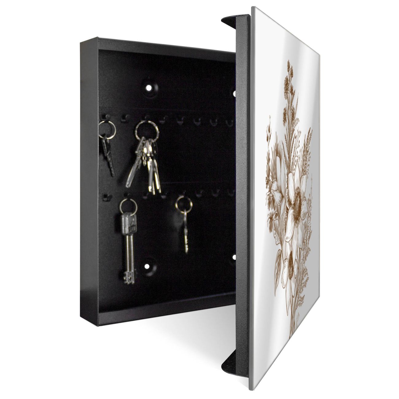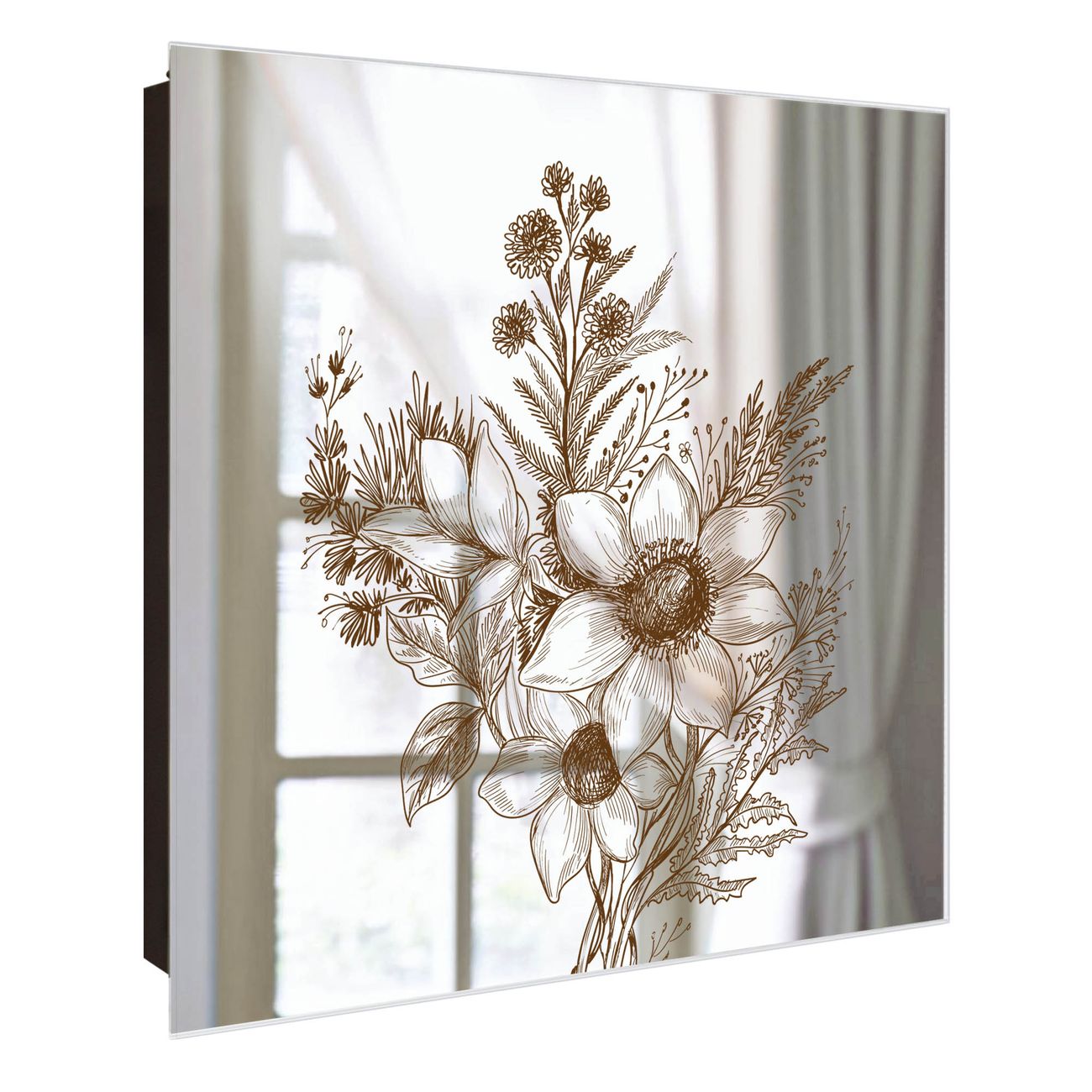 Spiegel Schlüsselkasten - Design Schlüsselbox Motiv Florale Zeichnung