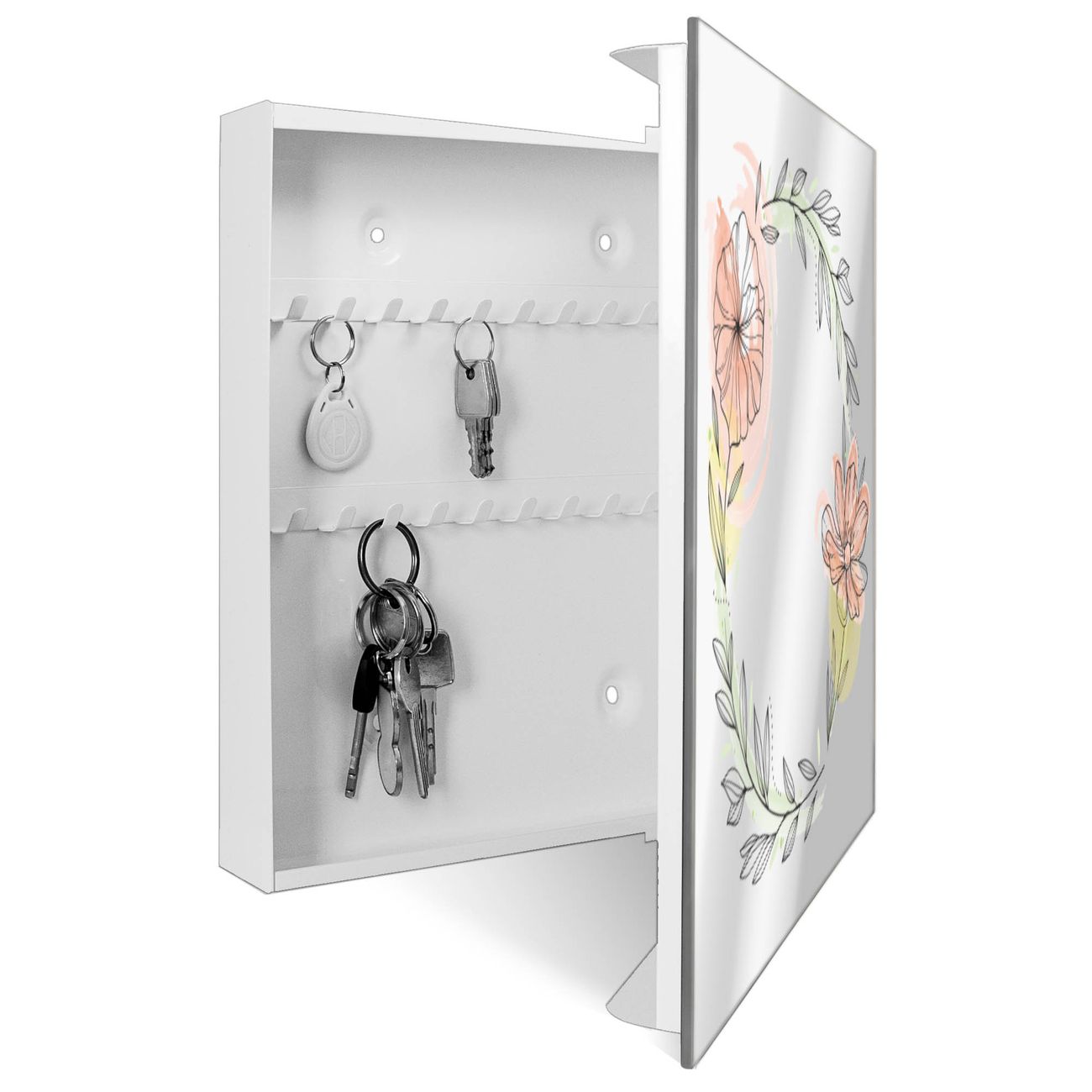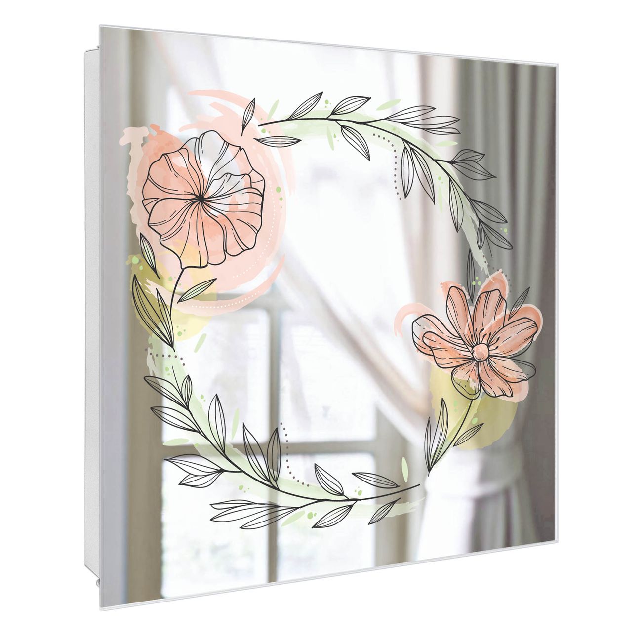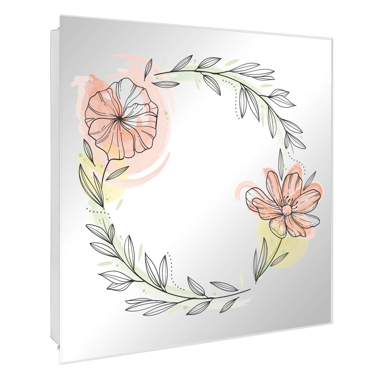 Spiegel Schlüsselkasten - Design Schlüsselbox Motiv Floraler Blütenkranz