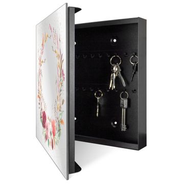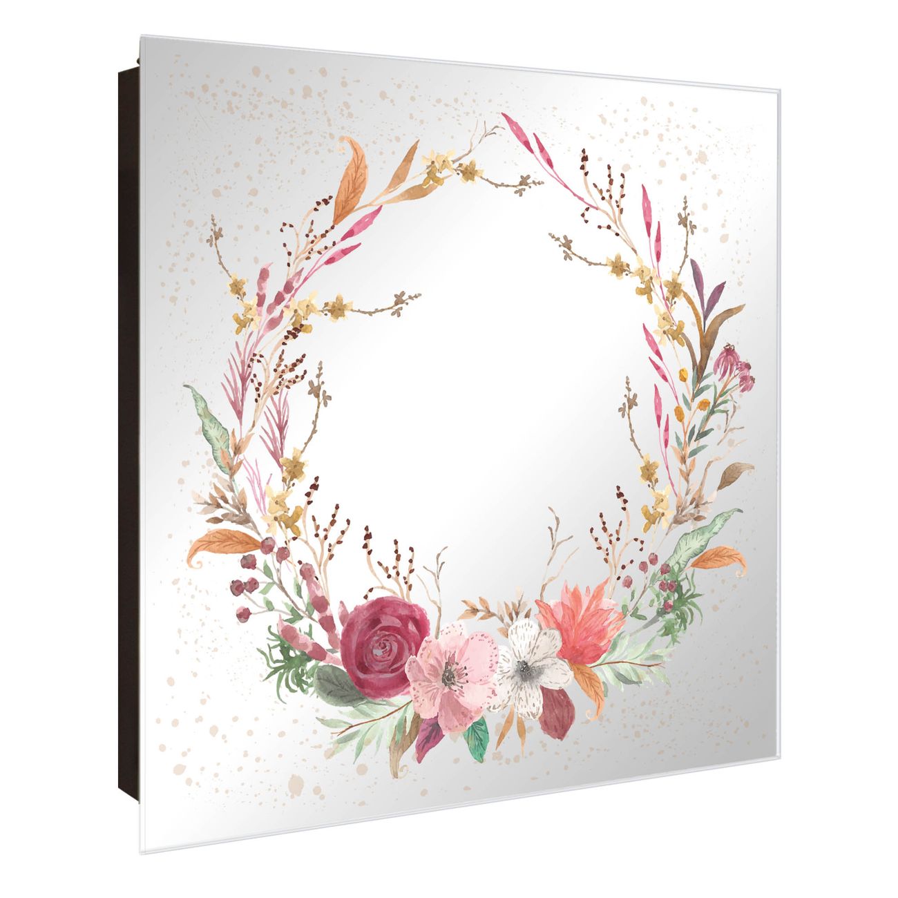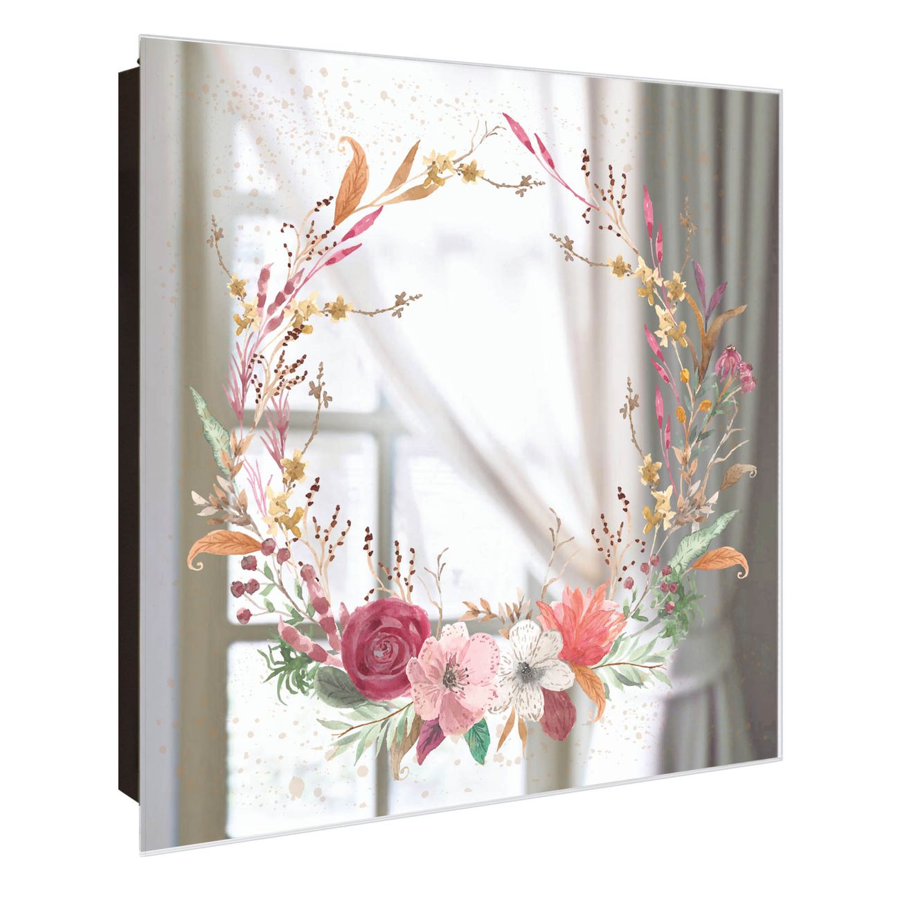 Spiegel Schlüsselkasten - Design Schlüsselbox Motiv Floraler Blumenkranz
