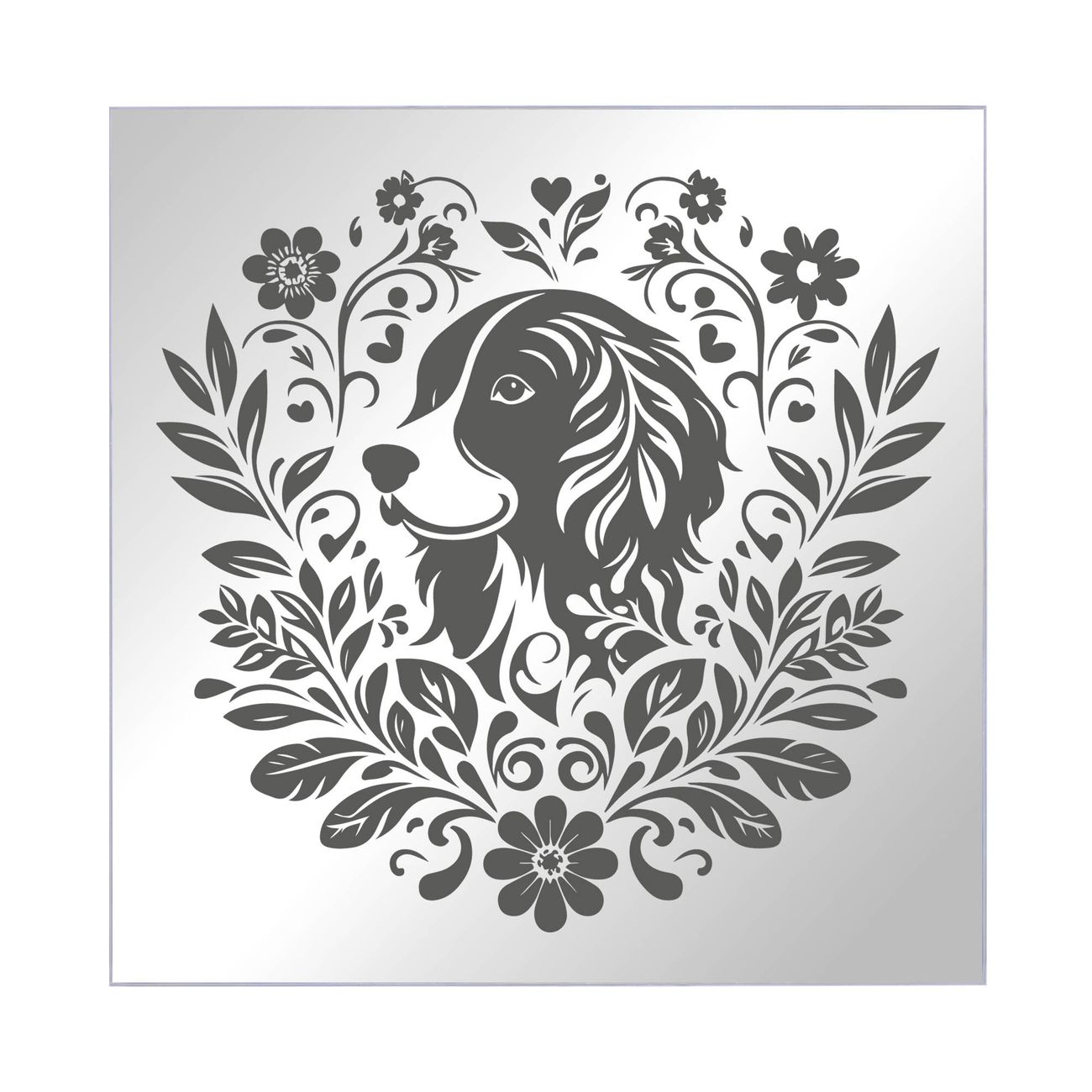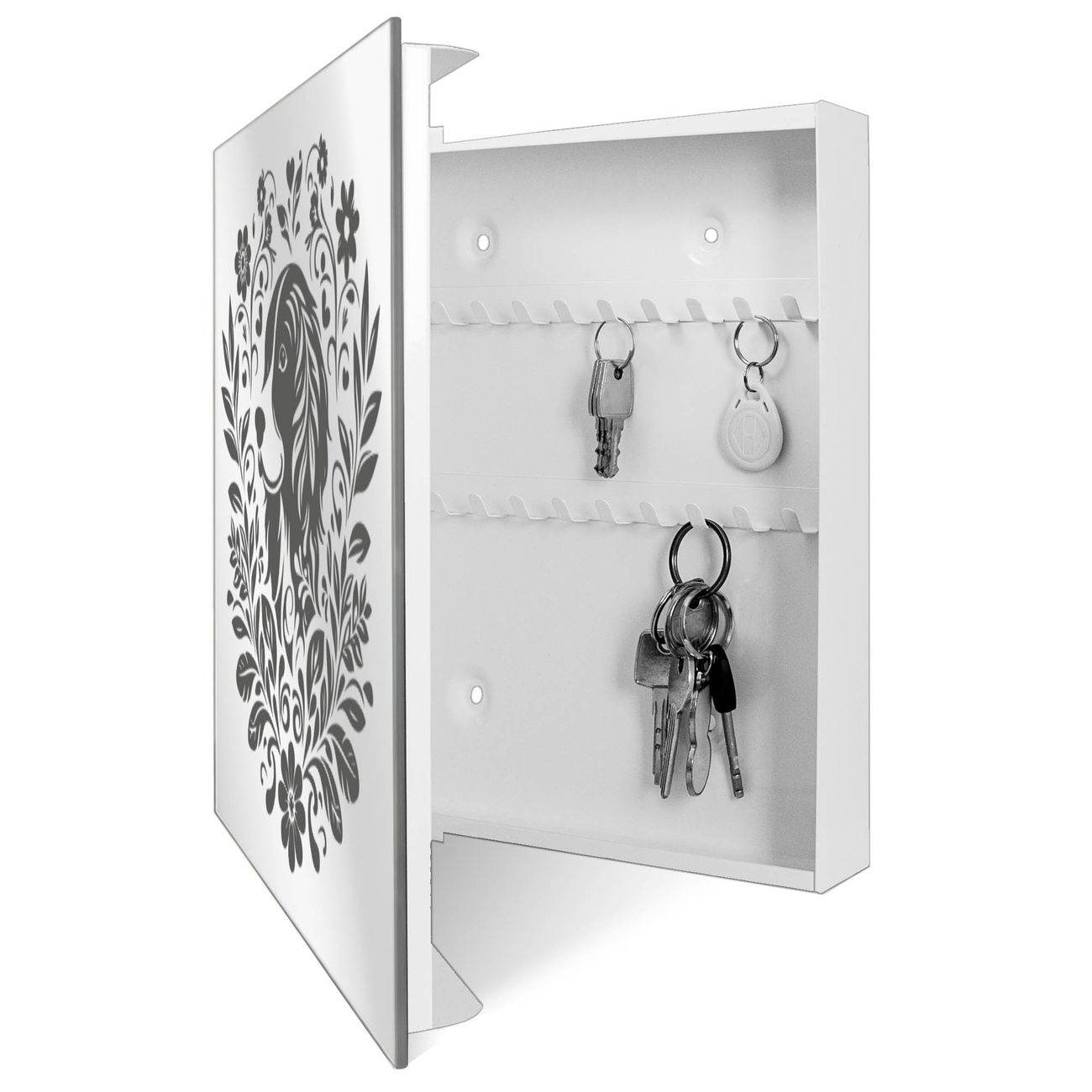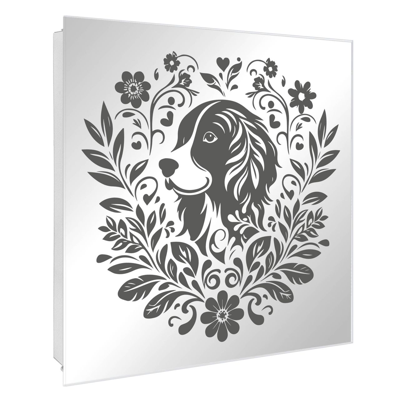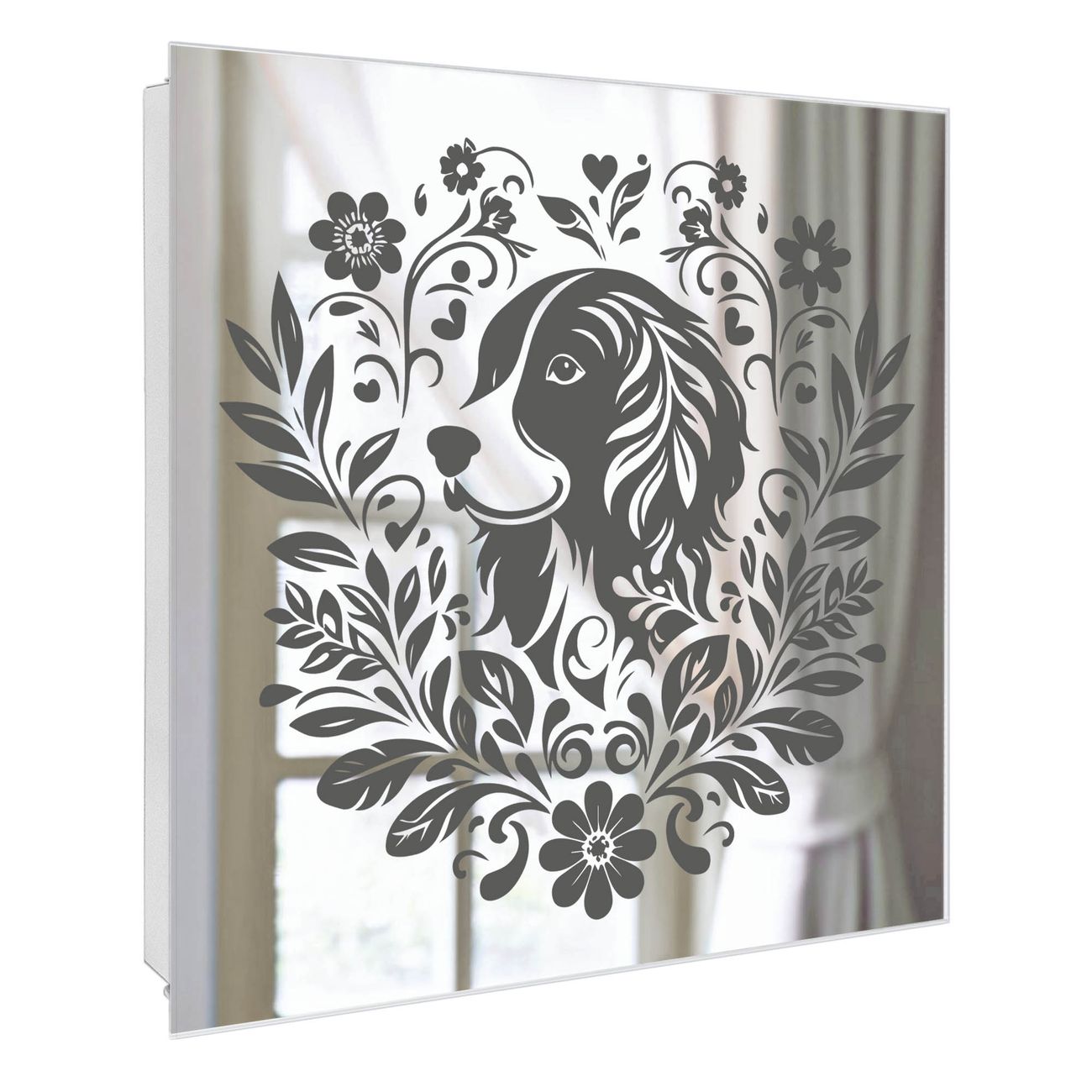 Spiegel Schlüsselkasten - Design Schlüsselbox Motiv Floraler Hund
