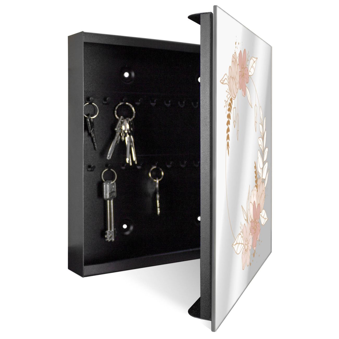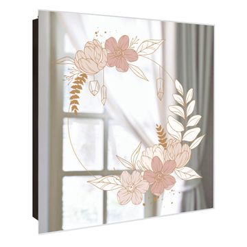 Spiegel Schlüsselkasten - Design Schlüsselbox Motiv Floraler Kranz